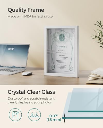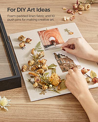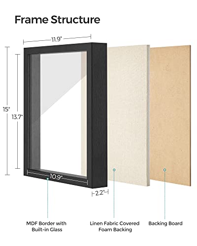 SONGMICS Shadow Box Frame, 8x10 Black Box Frame Display Case with Top Slot and Stick Pins, Wood Picture Frames with Linen Back for Photos Medals Awards Memory, Wall Hanging Tabletop