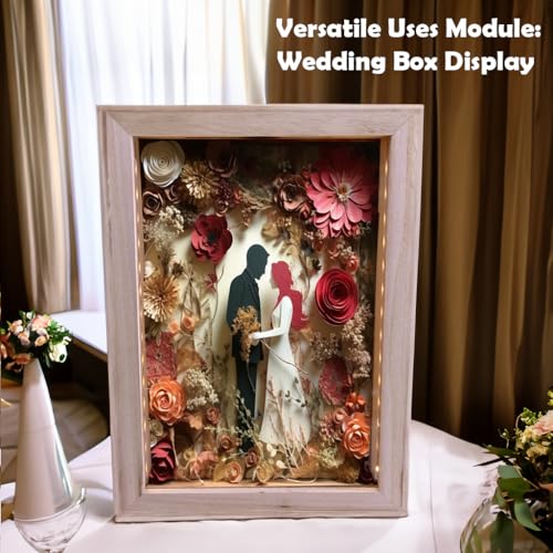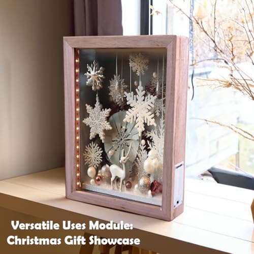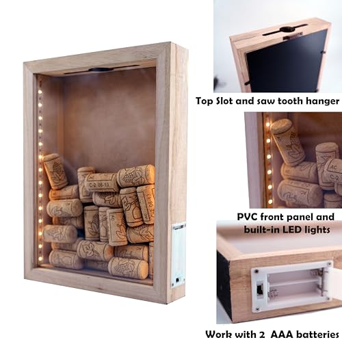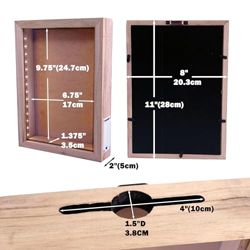 8"X11" Rustic Natural Wood Shadow Box with Lights,LED-lit Display case for Wine Corks, Tickets, and Creative Exhibits,Artistic Presentations