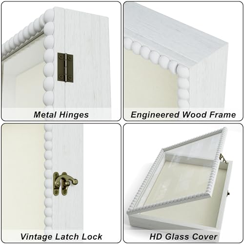Love-KANKEI Shadow Box Frame 8x10,Wood Deep Shadow Box Display Case with Unique Beads Door and Glass Window, Memory Box for Pictures,Medals,Memorabilia,Collections Natural