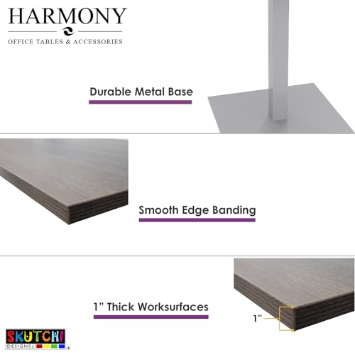 Standing Height Meeting Table With T Legs | Bistro Height Oval Shaped Table | 43"H Bistro Table | Harmony Series Office Table | 34"Wx70"L | Blonde Sufside Ash With Matte Black Base