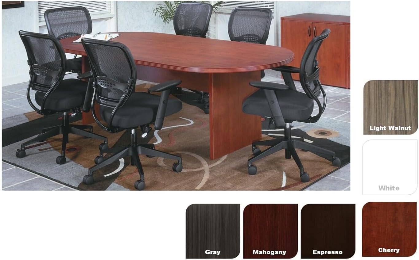 New Cherry 8 ft Modern Executive Racetrack Shaped Conference Table Panel Legs Wood Trim Fixed Arms Meeting Boardroom Room Grommets Unique Offices Oval Desk Furniture Set 95"Lx44"Wx29"H