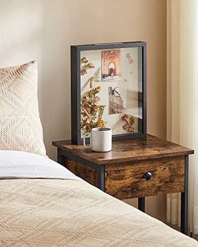 SONGMICS Shadow Box Frame, Set of 2, 1.3-Inch Deep Memory Display Case for Desk Wall Decor, Box Picture Photo Frame with 8 Wood Push Pins, 6 Mats, 3 Non-Trace Nails, Gift, Teak Brown