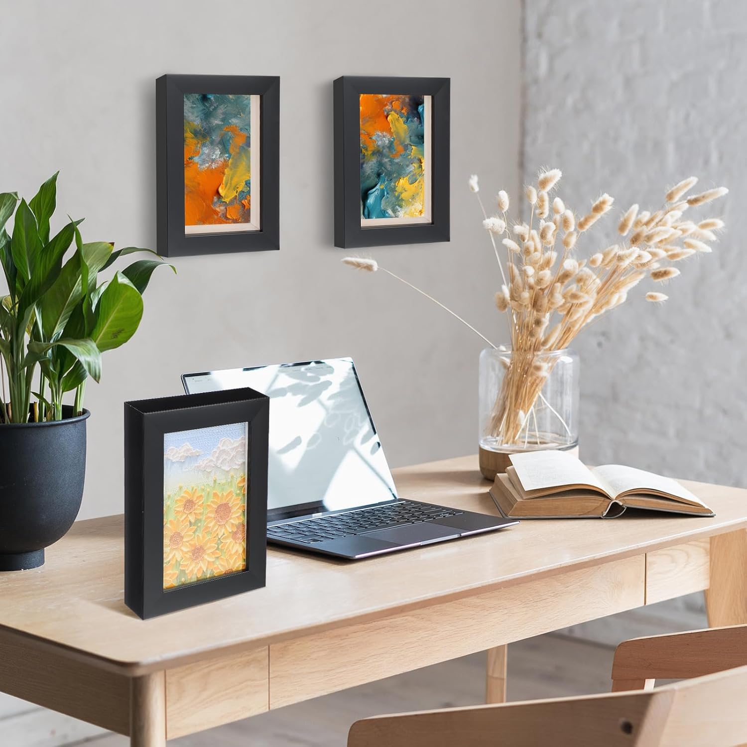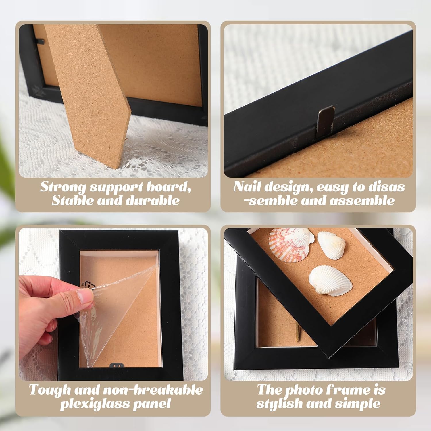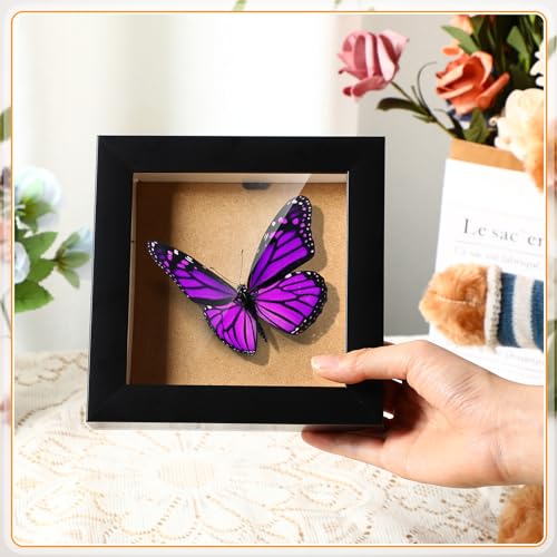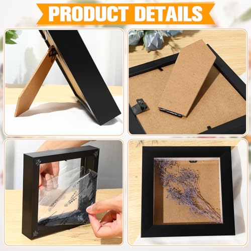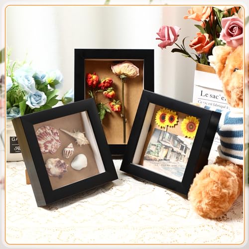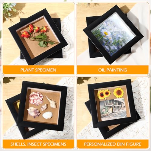 6 Pcs Shadow Box Frame 4 Size 3.5x5 4x6 5x7 8x8 Inch Black Wood Small Shadow Box Shadow Boxes Display Cases Flower Frame Deep Picture Frames for Medals, Tickets, Photo, Keepsake