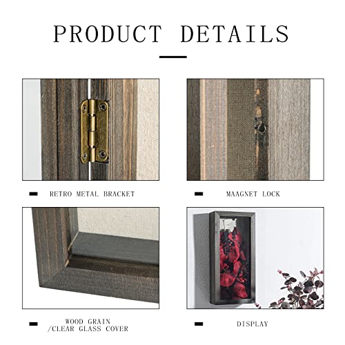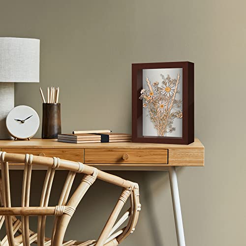 Shadow Photo Frame,Wooden Double-Sided High-Definition Plexiglass Storage Box, DIY Display Box, Suitable for Dried Flowers, Specimens, Handicrafts, Baby Souvenirs and Photos (Walnut Brown)