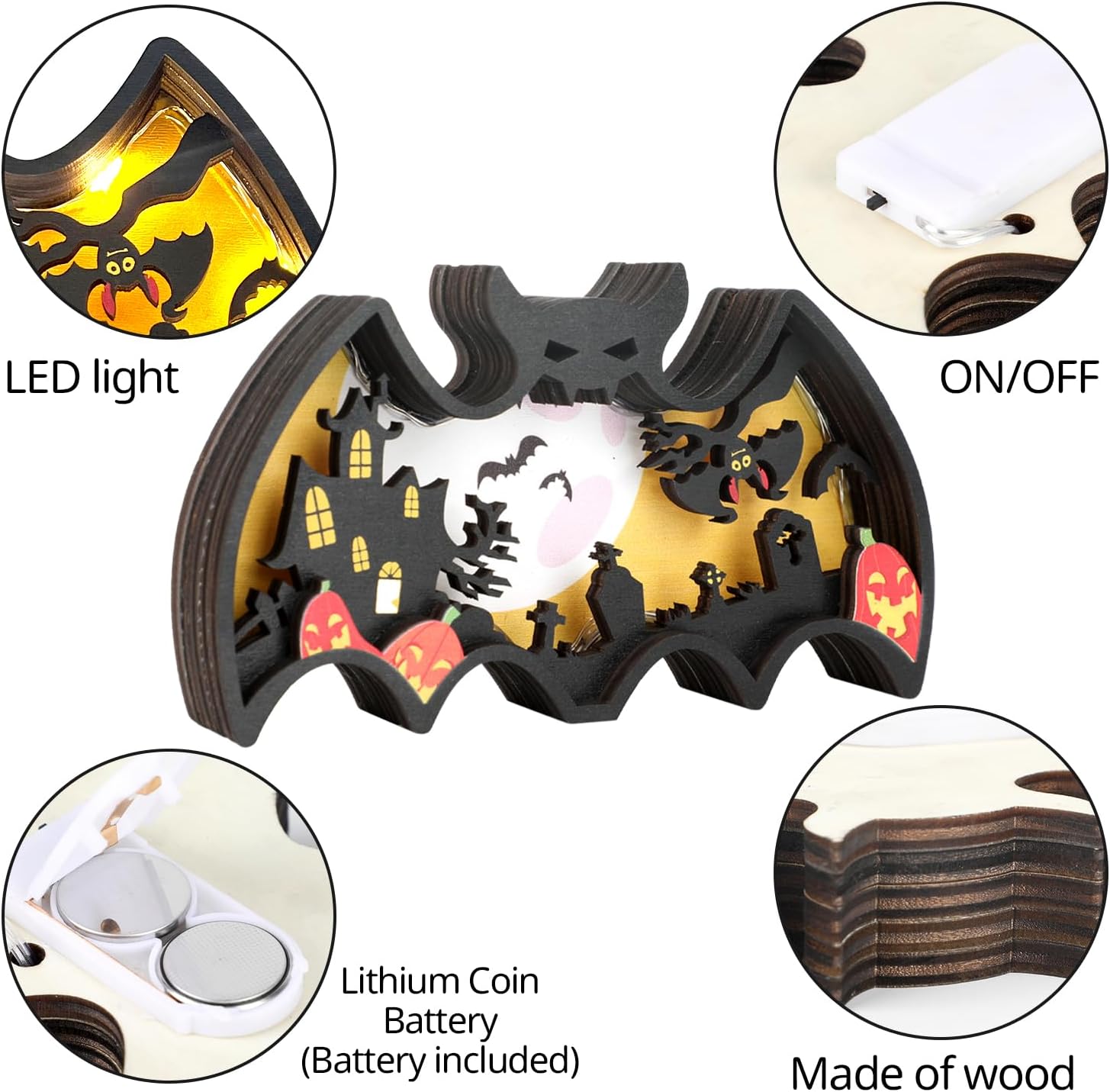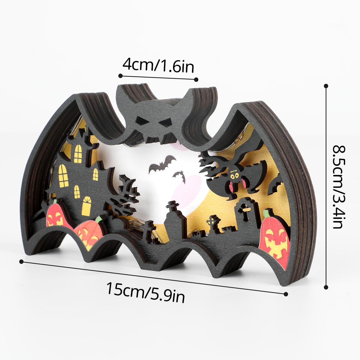 Halloween Wooden Lighted Table Decoration, Light Up Bat Table Ornament Wooden Shadow Box for Halloween Party Dinner Coffee Table Decoration
