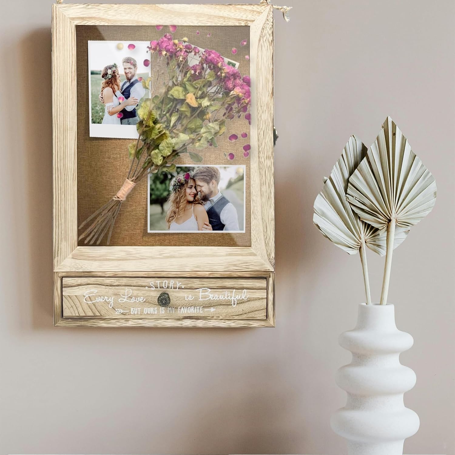 Shadow Box Frame, 11”X 16” Retro Wooden Wedding Shadow Box Frame with Shelves and Drawers, Large and Deep Shadow Boxes Display Cases, Wedding Gifts for Newlyweds, Bridal Shower Gifts for Friends