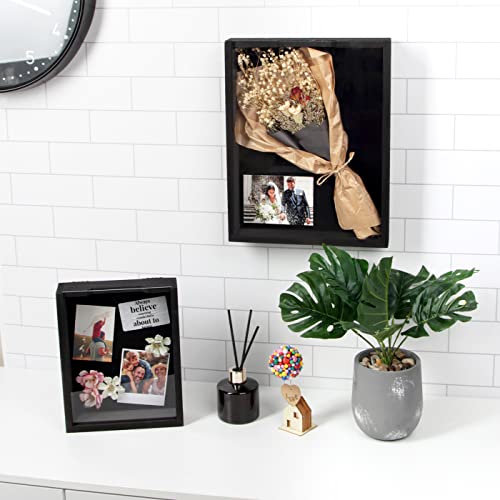 J JACKCUBE DESIGN Set of 2 Rustic Black Wood Shadow Box 10 x 8, Memory Display Storage Case for Keepsakes, Pictures, Cards, Tickets for Tabletop, Wall Mount Frame- MK740-1BB