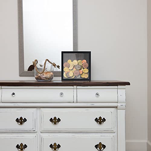 GraduationMall 8x8 Top Loading Shadow Box Frame with HD Glass,Wood Display Case with Slot,1.25 inches Interior Depth,Ideal for Wine Bottle Caps,Tickets,Shells,Stamps and More,Black