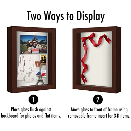 Americanflat Front Opening 8x10 Shadow Box Frame with Shatter-Resistant Glass - Silhouette Collection - Shadow Box Display Case for Tabletop and Wall Display - Rustic Brown