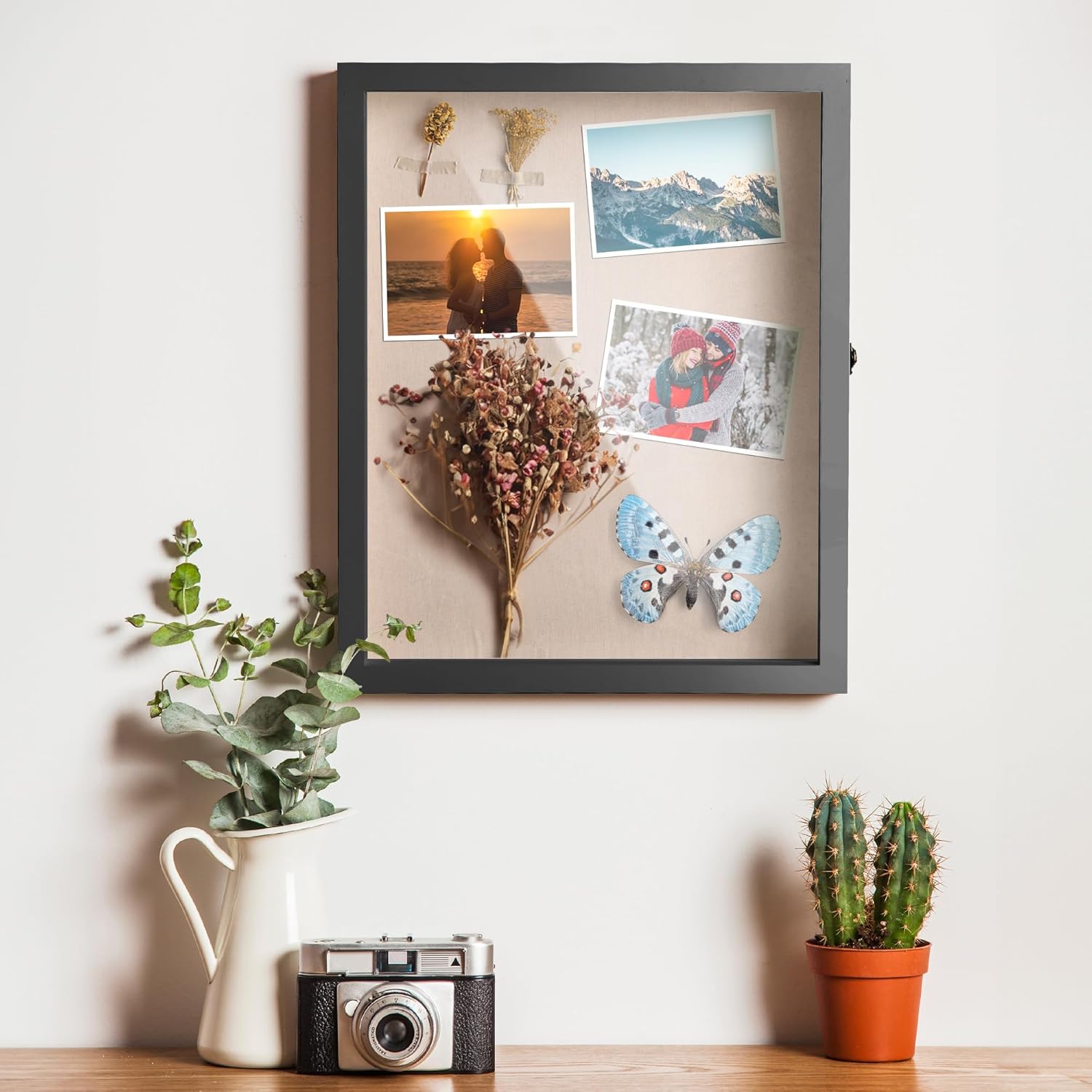 16x20'' Shadow Box Display Case, Extra Large Shadow Box with Door and Metal Lock for Keepsake Photos Tickets Flowers Bouquet Memorial Items Collages, for Home (Black)