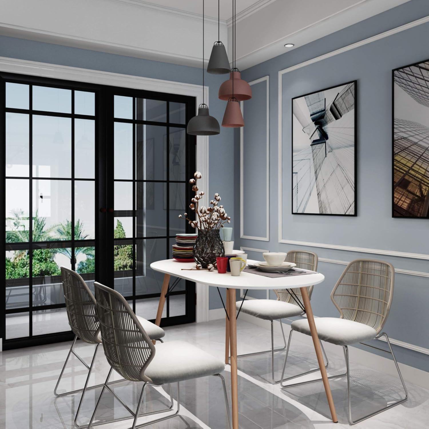 Dining Table Mid Century Modern Kitchen Table White Simple Table for Home Office Kitchen Living Room Bistro Cafe, Computer Writing Desk, Table only