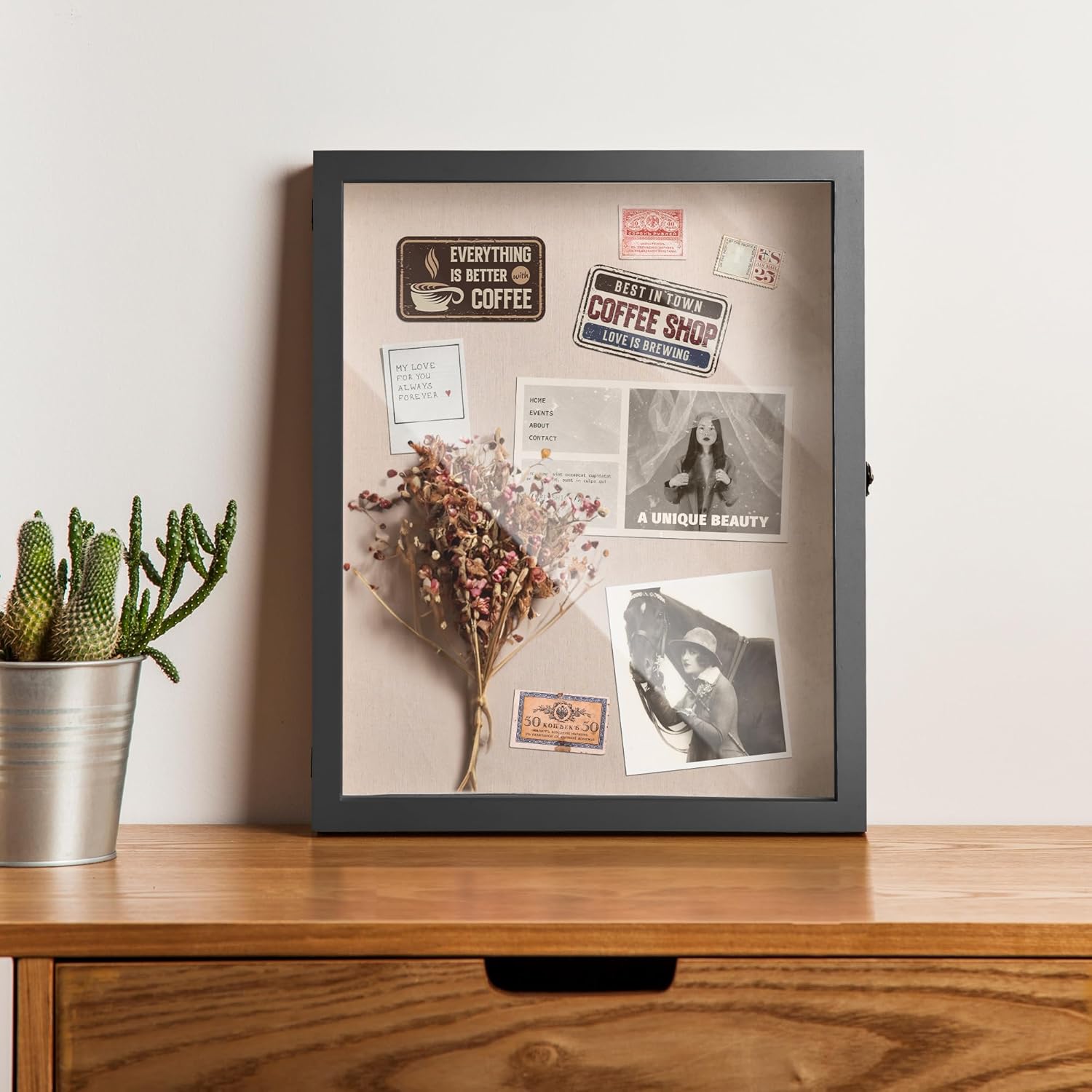 5x7-inch Shadow Box Frame - Display Case - (Easy to Change Photos) with Glass Front,for Desktop and Wall Hanging Display Collectibles,Plant Specimen and Photos (Dark Brown)