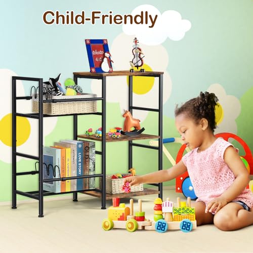 2 in 1 Kids Bookshelf & Kids Toy Storage, 5 Tier Shelf for Kids, Bookshelf with Storage, Kids Bookcase and Toy Storage Organizer for Living Room, Bedroom, Kids Room School & Nursery, Metal, White