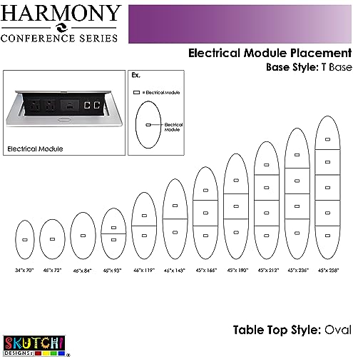 6 Person Small Oval Conference Table with T Bases and Power Module | Harmony Series | 6' Meeting Room Table | Asian Night with Matte Black Base