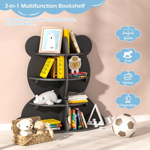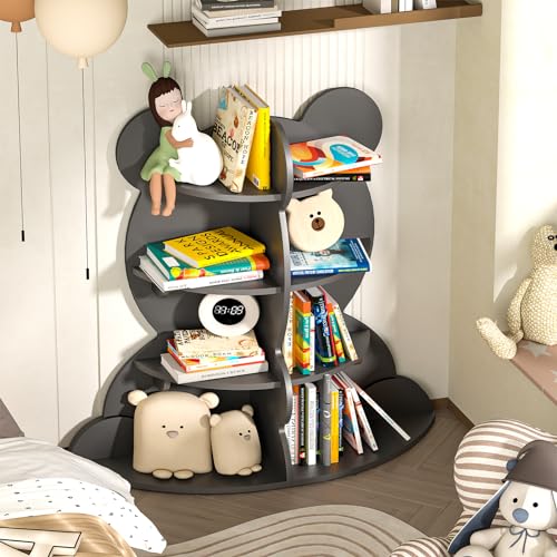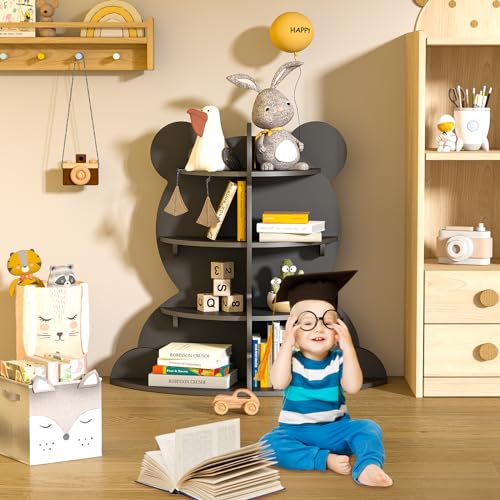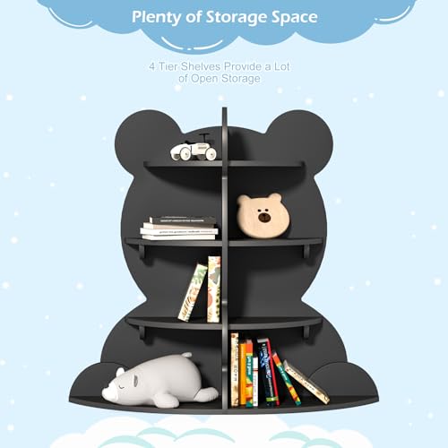 Duck Kids Bookshelf Toddler Bookcase 4-Tier Baby Book Rack Children Toy Storage Organizer Wood Display Shelf for Nursery Playroom Bedroom Classroom School Homeschooling Boy Girl’s Gift (Yellow Duck)