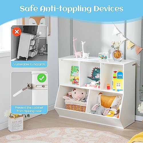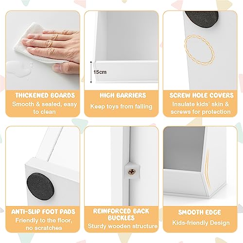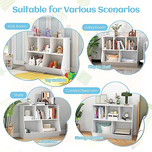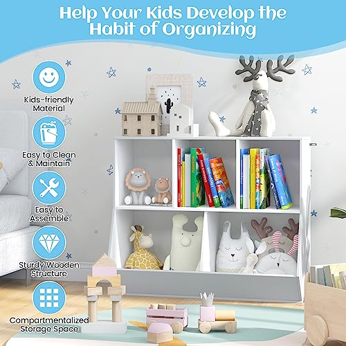 KOTEK 5-Cubby Toy Storage Organizer, Wooden Toy Storage Display Cabinet, Open Toy Shelf, Kids Bookshelf Bookcase for Playroom, Children's Room, Kindergarten, Nursery, Bedroom (White)