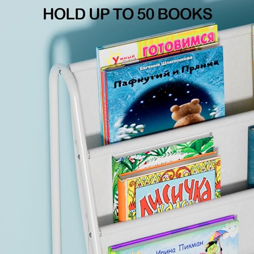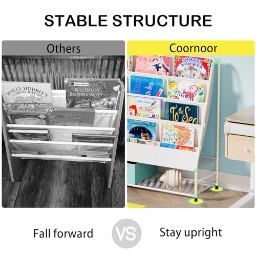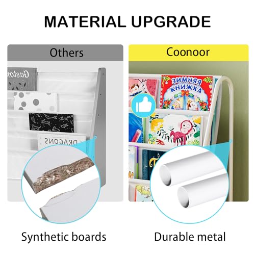 Coonoor Kids Bookshelf - 4 Tier Small Bookcase for Kids Room, Metal Nursery Book Shelf, Sling Book Shelf and Toy Storage for Children, Idea Gifts for Boys and Girls