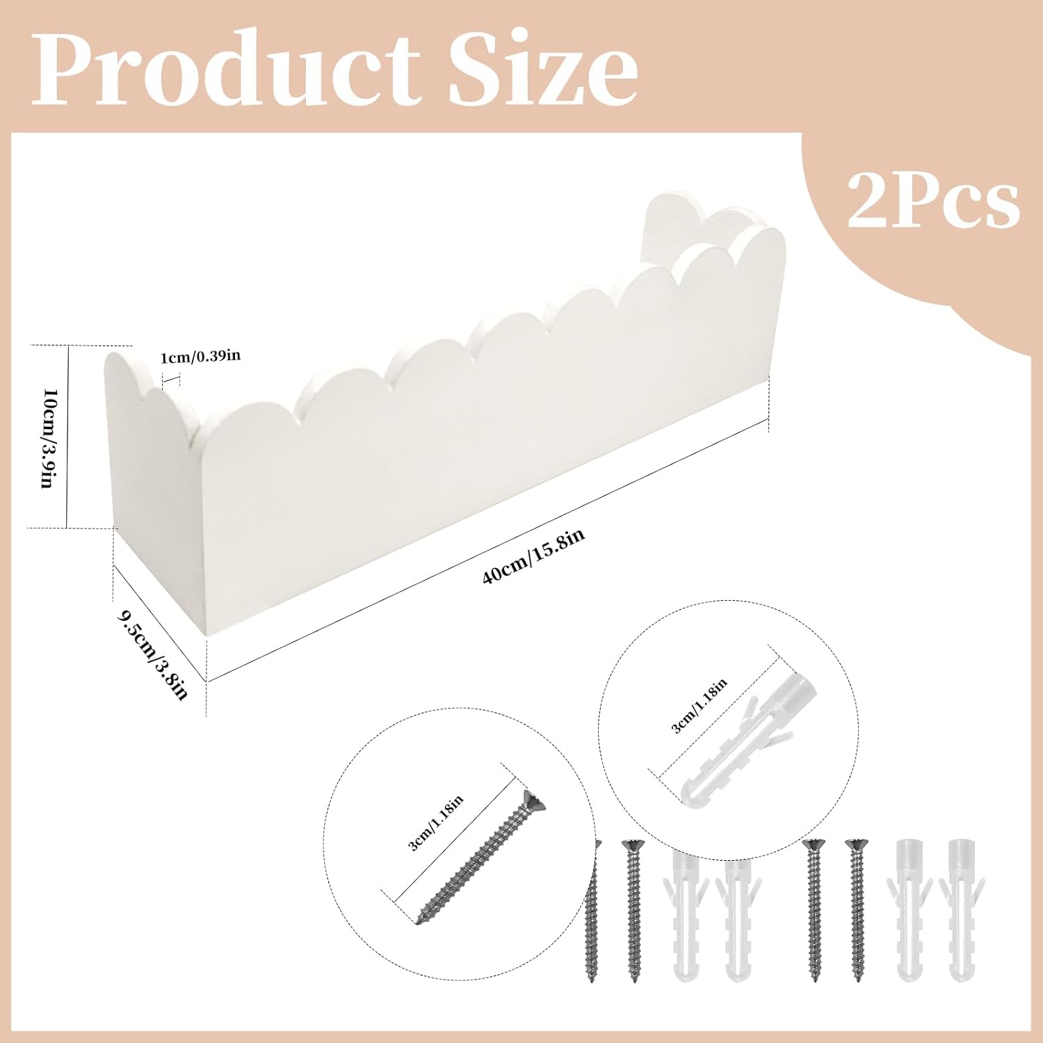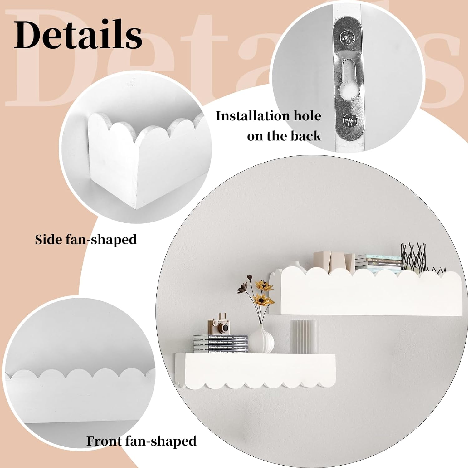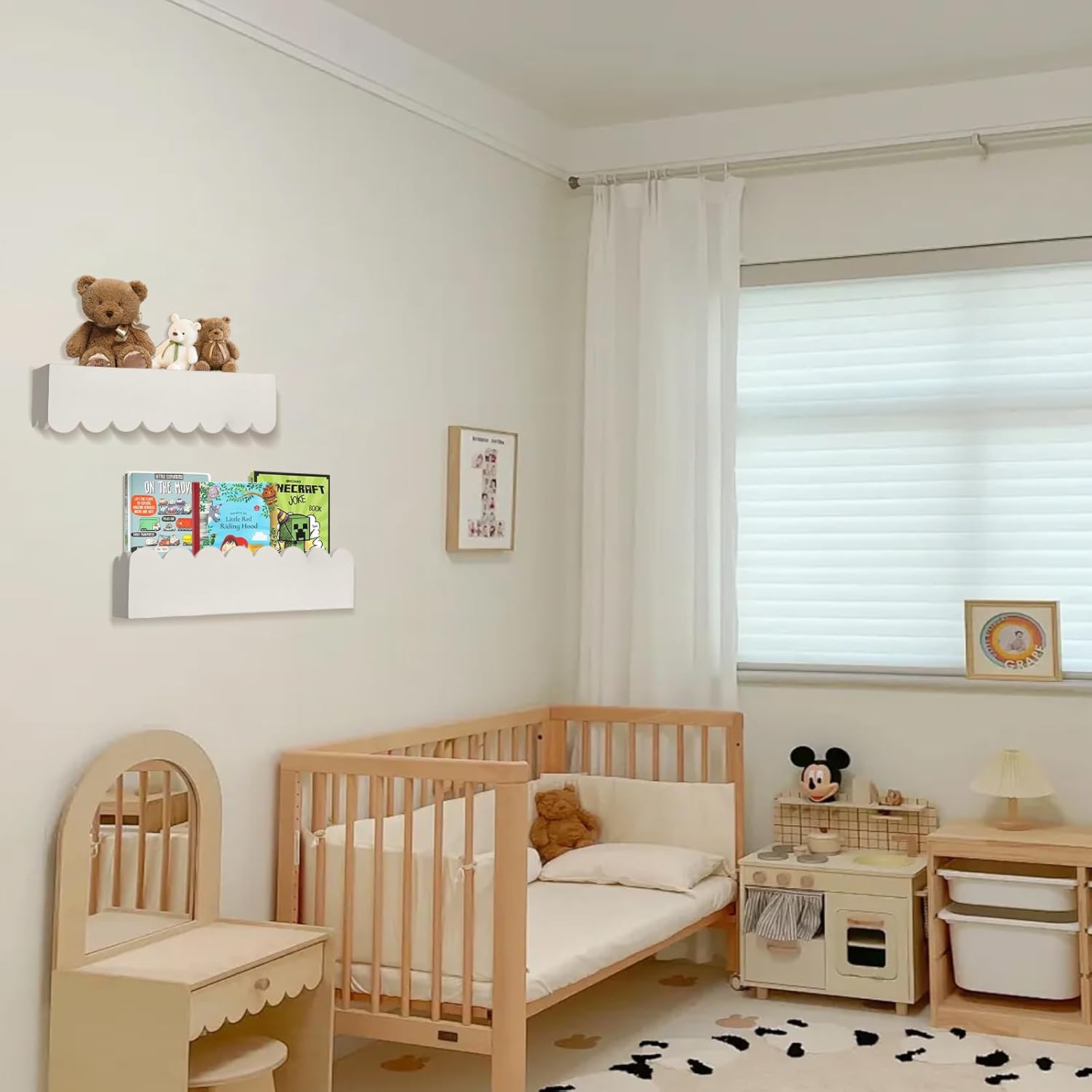 2 PCS Scalloped Shelves Kids Bookshelf Nursery Bookshelf Wooden Kids Bookshelf Kids Floating Shelves Scalloped Edges Bookshelf Montessori Bookshelf White Shelves for Kids Room(White)
