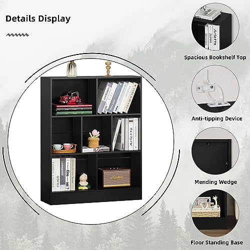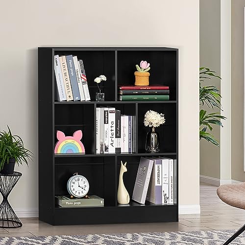 YAHARBO 3 Tier Bookshelf,Wide Kids Horizontal Bookcase,8 Cube Blue Book Shelf,Large Display Toy Storage Cabinet with Base,Floor Standing Modern Bookcases Organizer for Bedroom,Nursery,Playroom