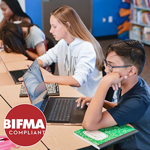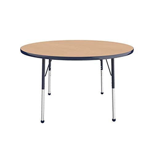 Factory Direct Partners 10047-GYBL Round Activity School and Office Table (60"), Standard Legs with Swivel Glides, Adjustable Height 19-30" - Gray Top and Blue Edge