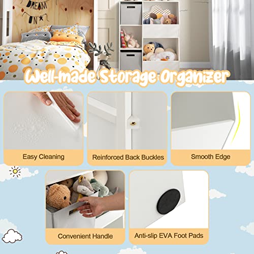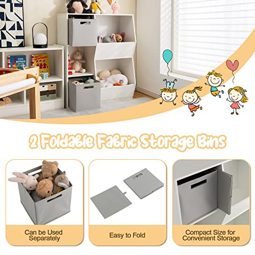 5-Cube Kids Toy Storage Cabinet, Freestanding Children Bookcase w/ 2 Foldable Storage Bins, Open Multi-Purpose Storage Display Organizer for Kids Room, Play Room, Hallway, Nursery