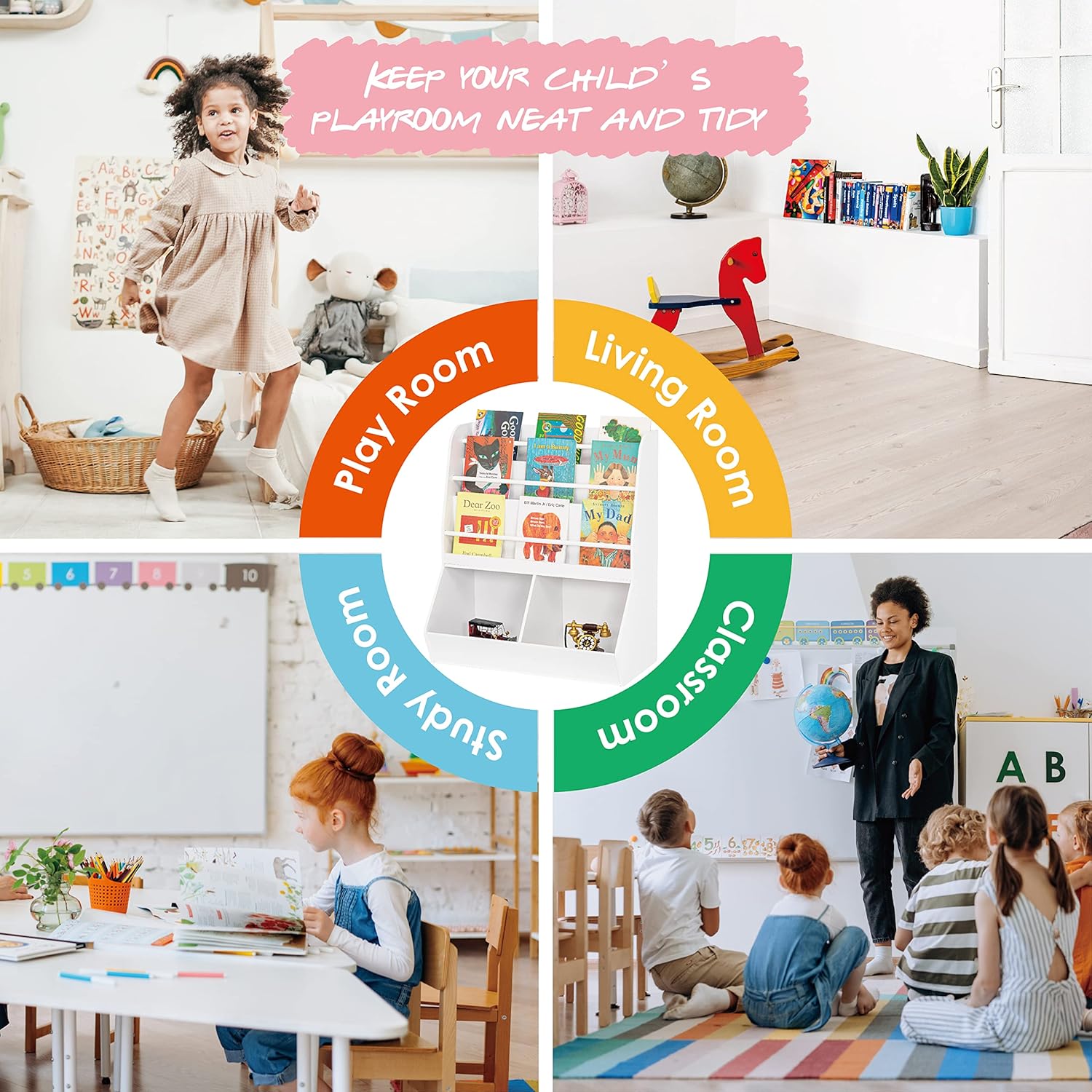UTEX kids Bookshelf and Toy Storage Cabinet, kids Bookcase Organizer and Cubby, Kids Bookshelf Display Stand, Kids Book Rack for Kids Room, Classroom, Nursery, White