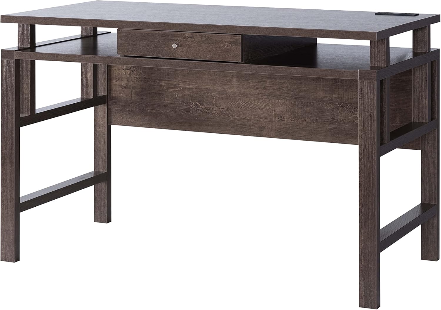 Home Office Desk, Writing Desk with Storage Drawer, USB/Power Outlet in Walnut Oak