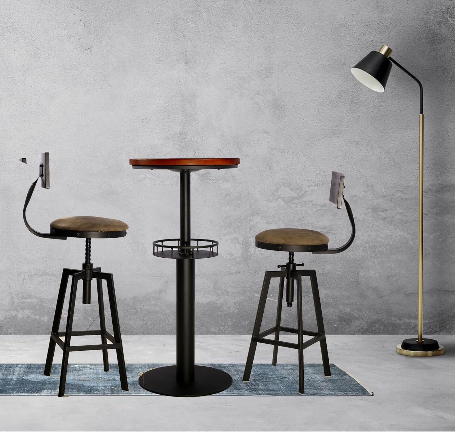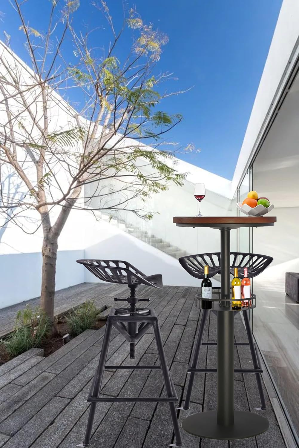 Topower Industrial Pub Table 19.7" Round solid pine Wood Top Double Layer 41.3“H Bar Table Black