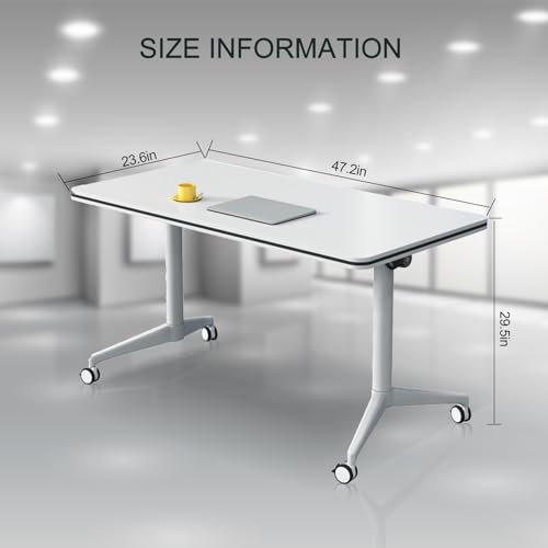 conference table,modern white office folding Flip Top Mobile Training Table 47.2"D x 23.6"W x 29.5"H The rounded table with wheels is convenient and fast, suitable for office, Meeting Tables (2Pcs )