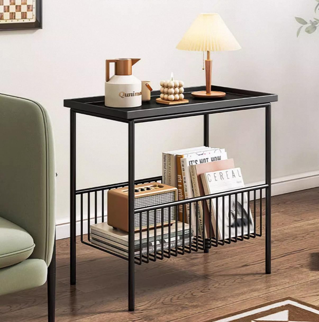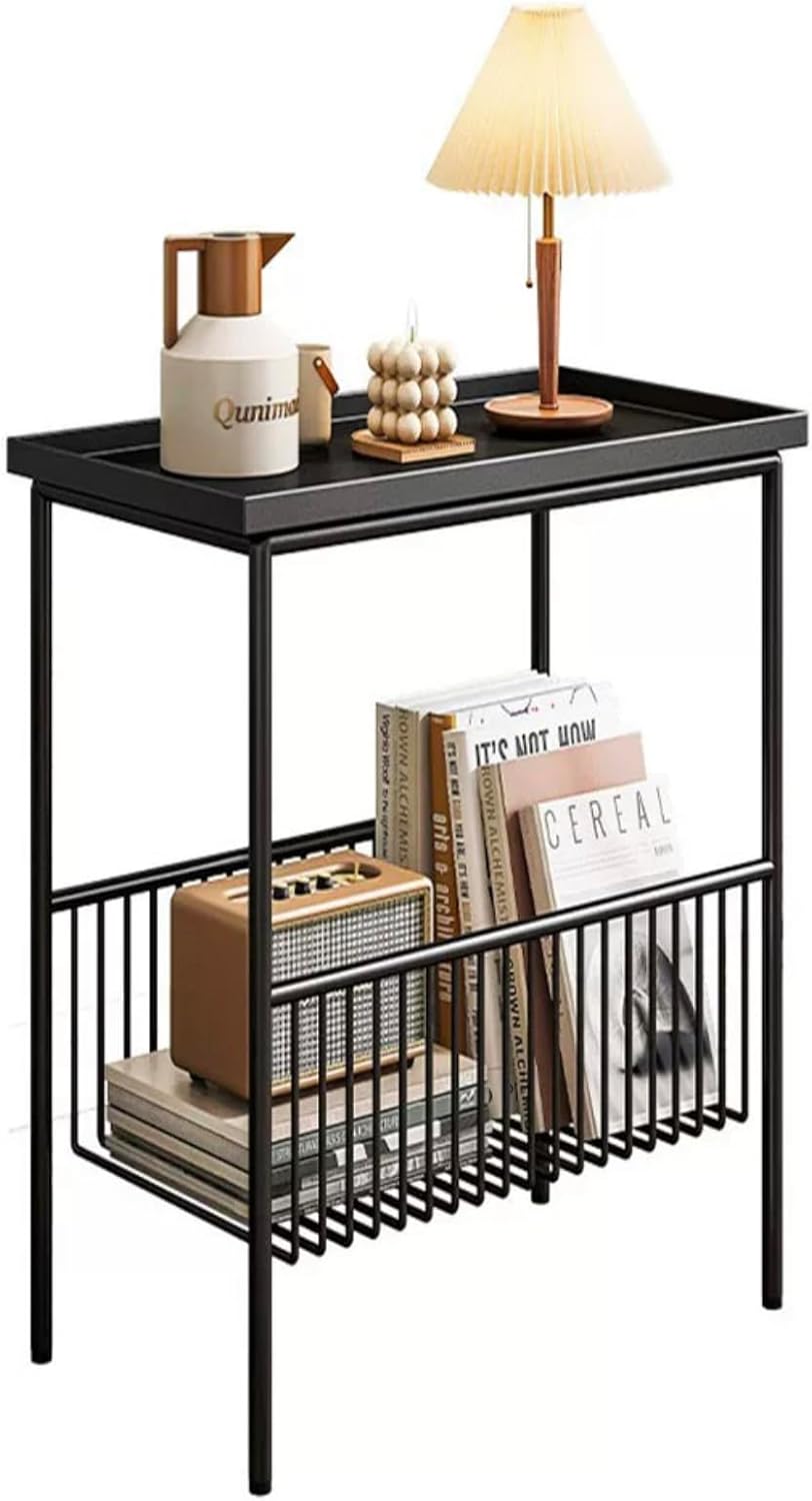 Square Side Table,Bedside Table Waterproof,Coffee Table with Matte Black Tray Top,4 Legs,Small Metal End Table for Bedroom,Living Room,Balcony,Outdoor(Black)