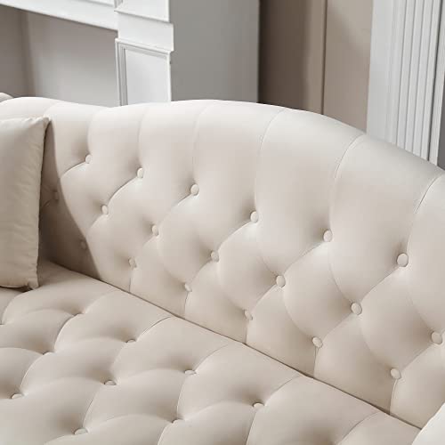 59.4" Width Classic Sofa Velvet Loveseat Contemporary Upholstered Button Tufted Nailhead Trimming Curved Backrest Rolled Arms with Silver Metal Legs Living Room Set, 2 Pillows Included (Beige)