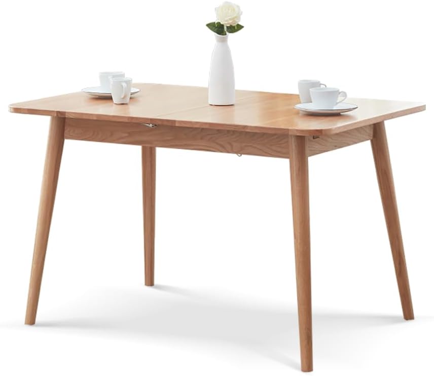 Solid Oak Round Corner Diagonal Leg Telescopic Table 1.2-1.6M, for 6-8 People to Meet Dining Table Wood (Light Color) W128367492