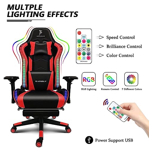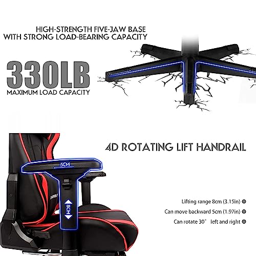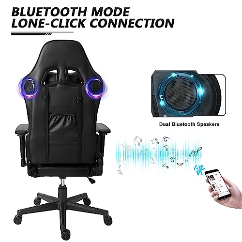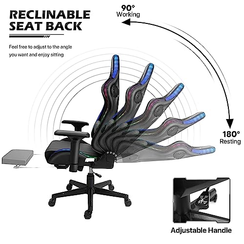 Gaming Chair Massage 7-Point Ergonomic Office Chair with Footrest & Lumbar Support 180° Reclining Adjustable,Video Gaming Chair with LED Lights and Speakers for Adults,Pink