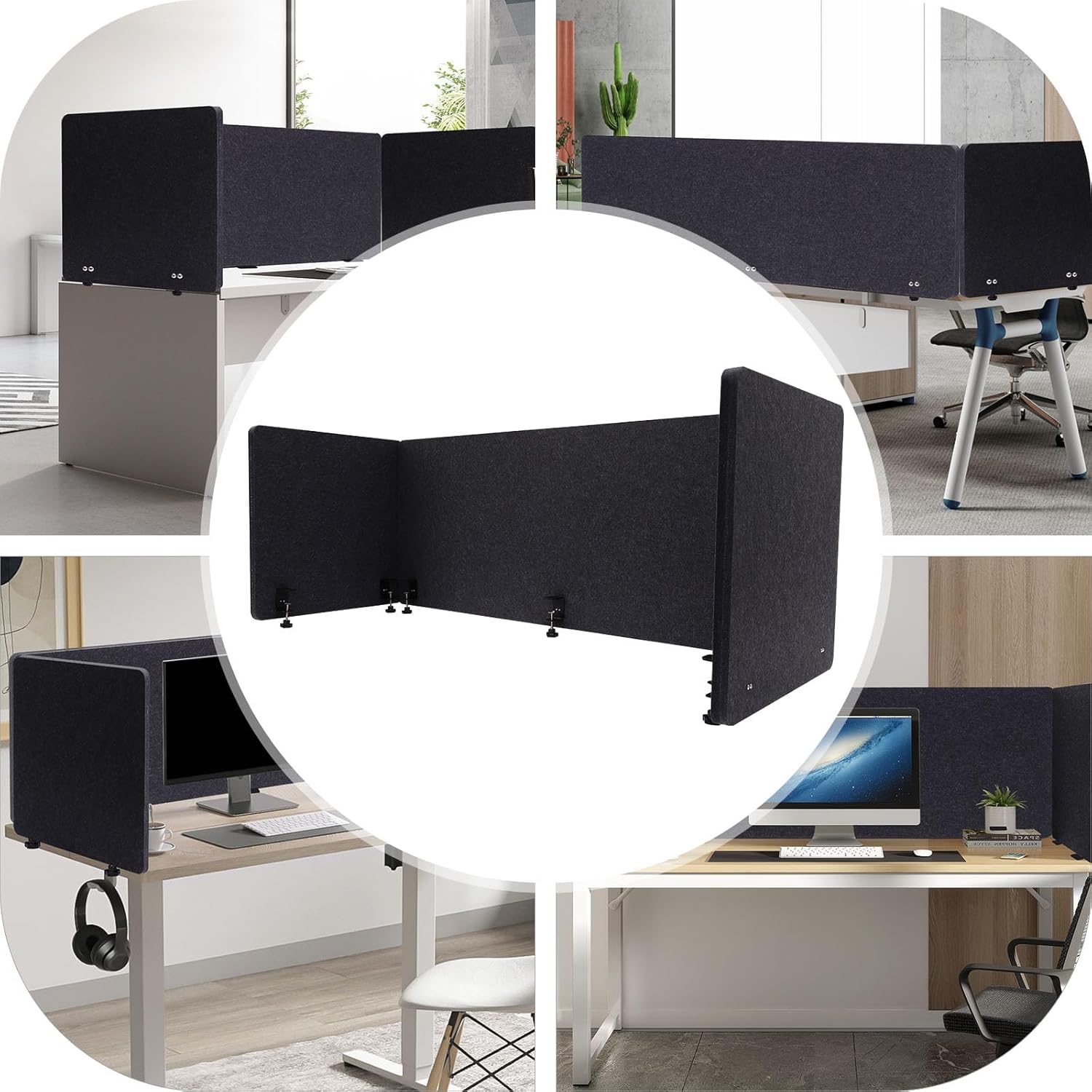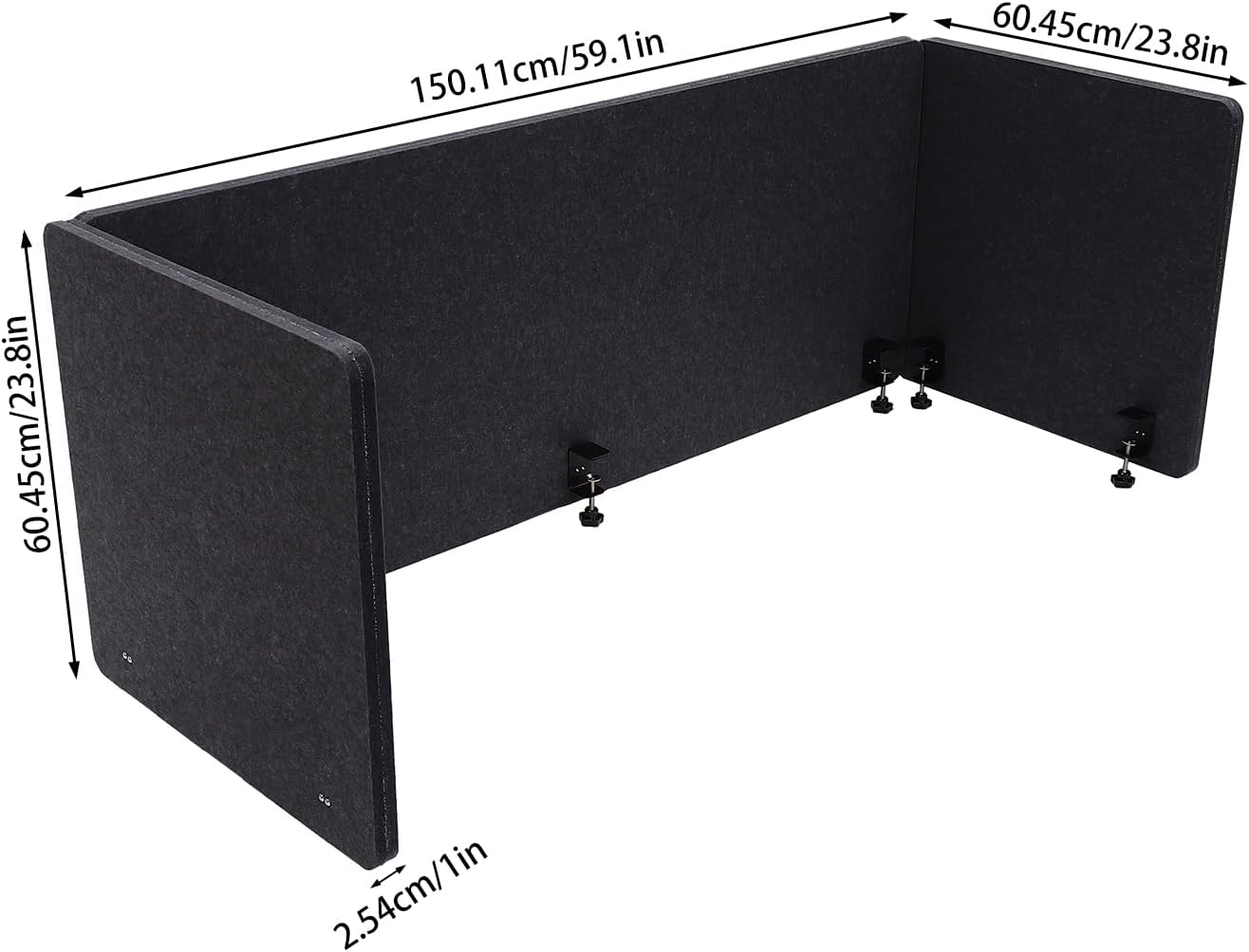 Stand Up Desk Privacy Panel, Clamp on Desk Divider for Office, Acoustic Desk Privacy Panel to Reduce Noise, Acoustic Partition, Office Desk Divider, Dark Gray, 59"L x 24"W, 24"L x 24"W