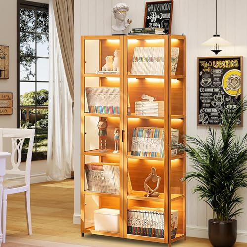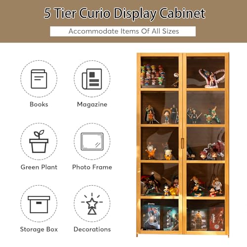 68" Curio Display Cabinet, Storage Shelves with Acrylic Glass Door, Collectibles Toy Organizers Rack & Display Shelf, Kids Bookshelf and Bookcase for Playroom, Bedroom