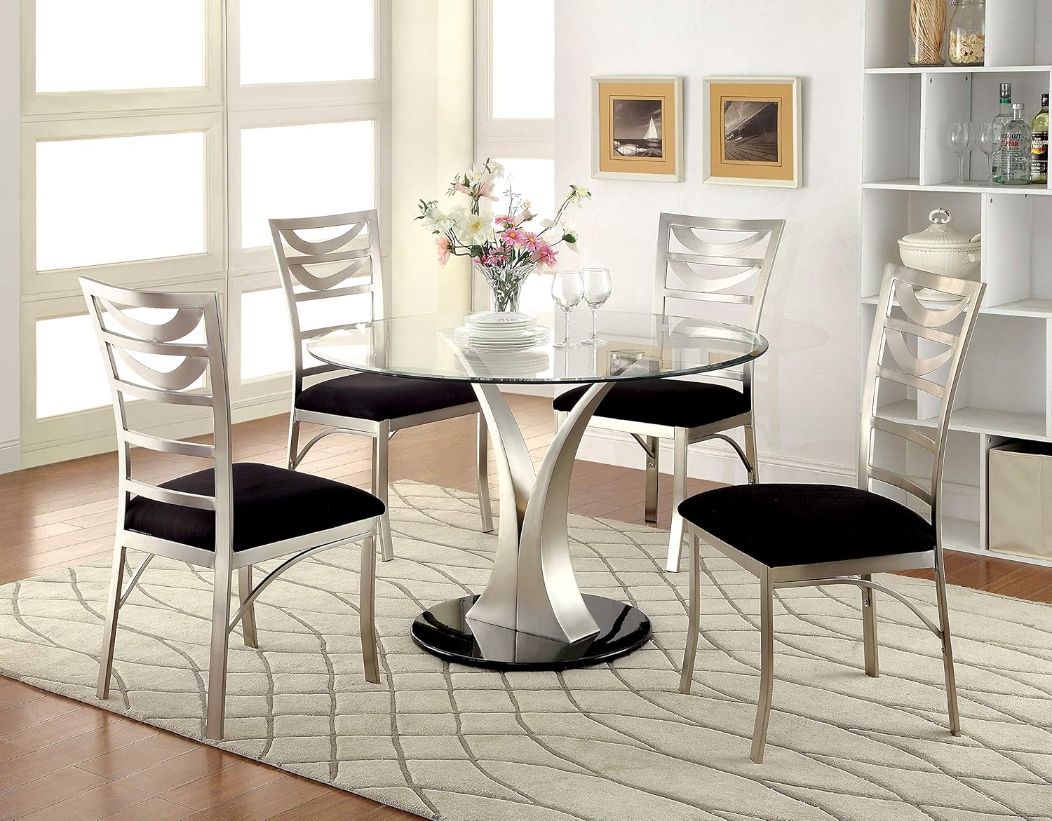 24/7 Shop at Home Dyana Contemporary Glass Top Dining Table, Silver and Black