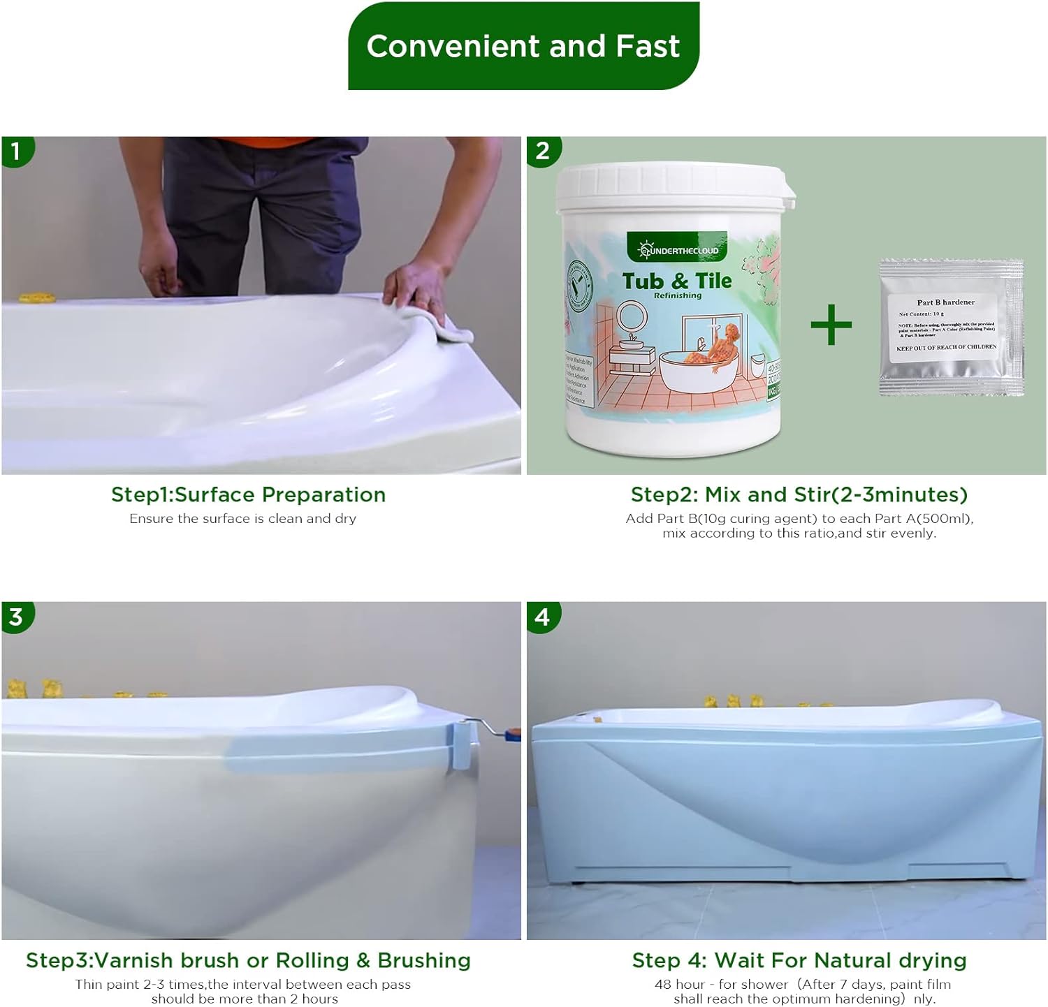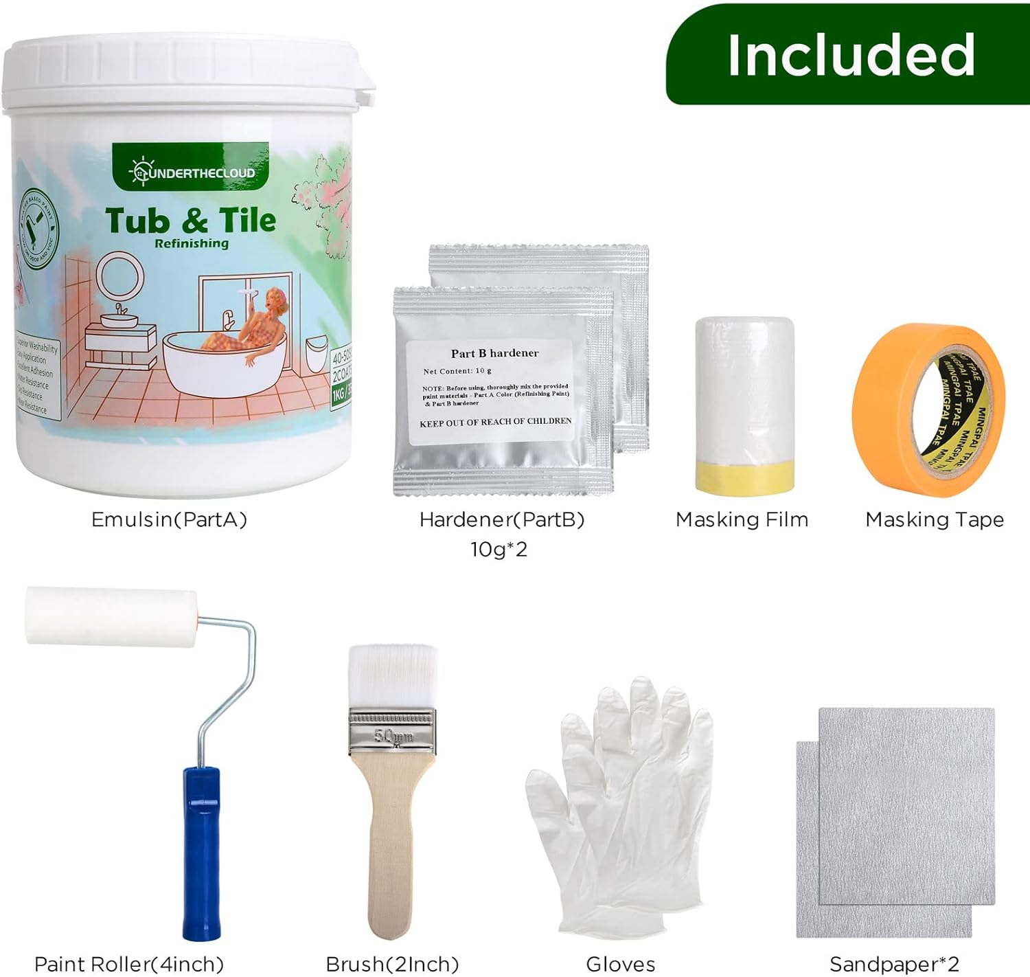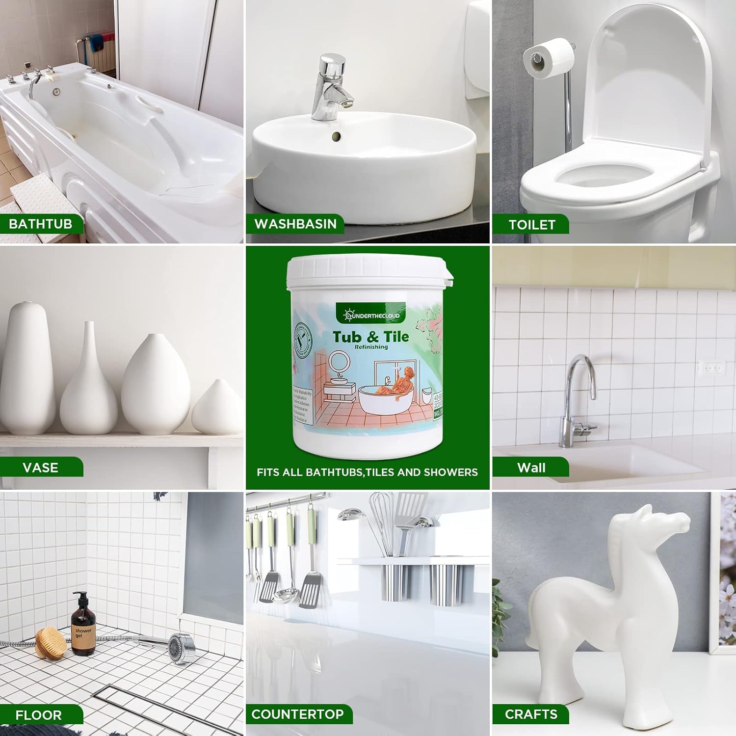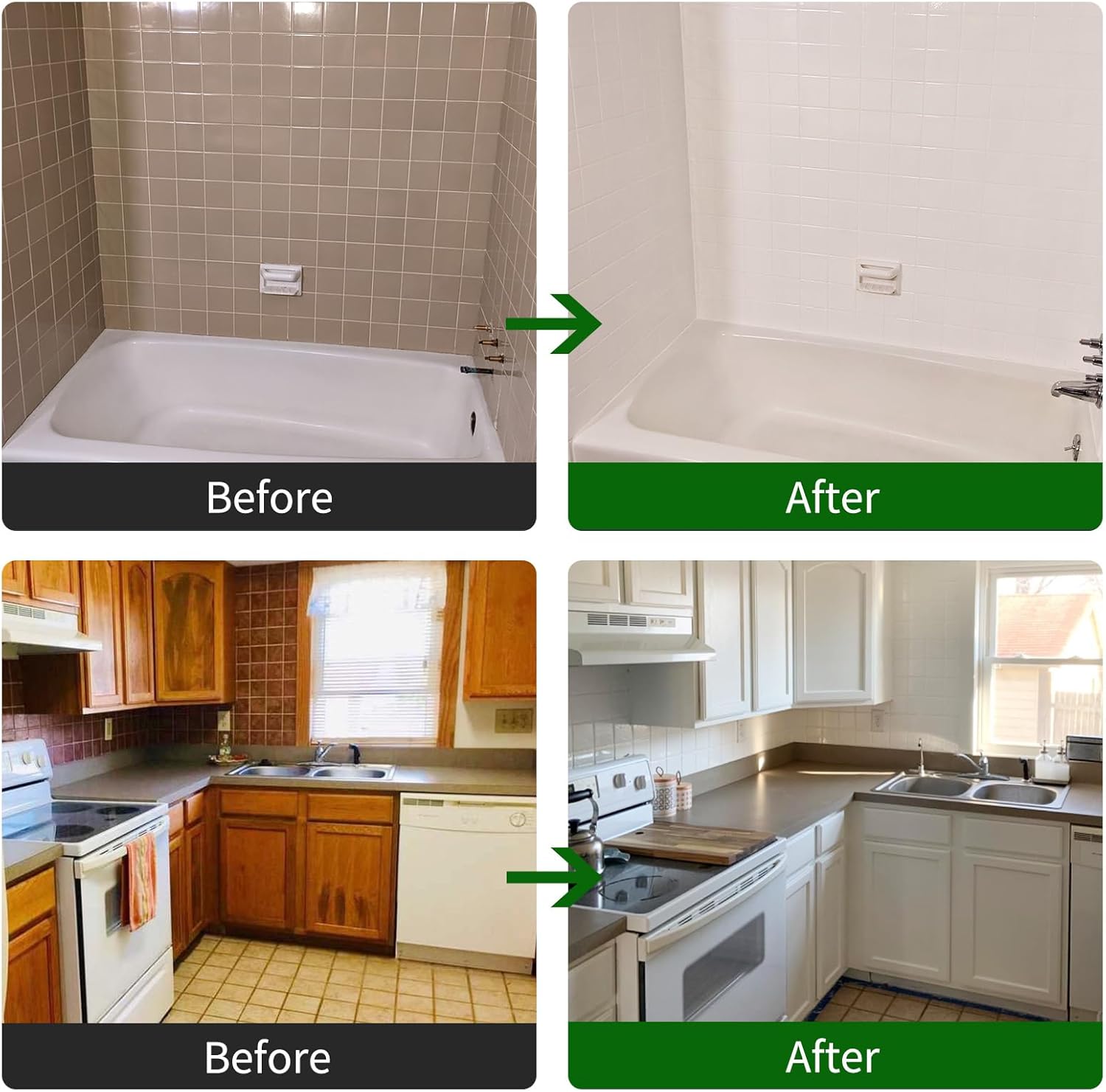 White Tub Paint Tub and Tile Refinishing Kit, Bathtub Refinishing Kit, Kitchen Epoxy Countertop Paint Kit, Odorless Ceramic Tile Paint for Bathroom Tiles 35 oz Paint for Furniture, Ceramic Tiles, Cabinets, Home Decor
