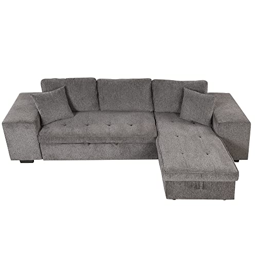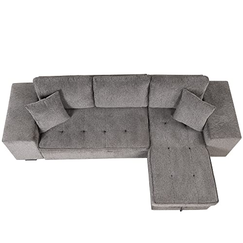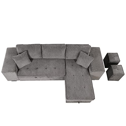 104" Modern L-Shape 3 Seat Reversible Sectional Couch, Pull Out Sleeper Sofa with Storage Chaise and 2 Stools for Living Room Furniture Set,Knox Charcoal (old sku:SG000431AAA) Living Room Sectionals,