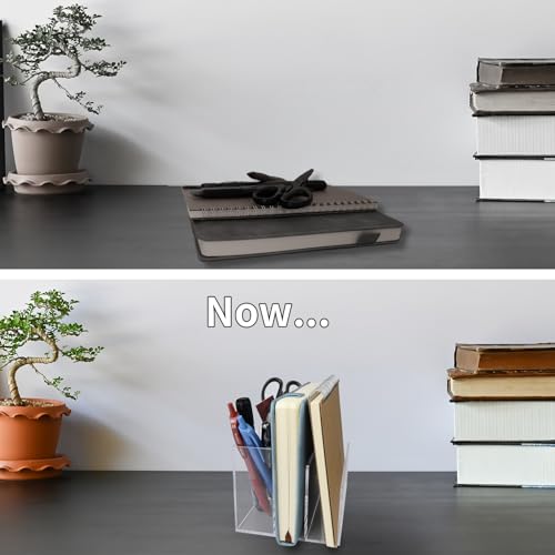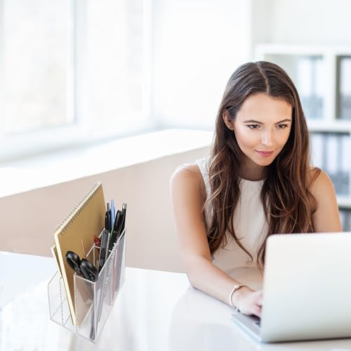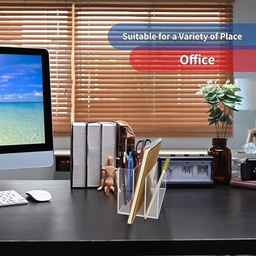 Acrylic Desk Organizer Clear Combination of File and Pen Holder 3-Section Office Desk Accessories Office Organization for File, Envelopes, Electronics, Pen, Cards and other small office supplies
