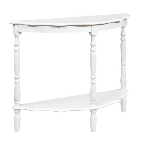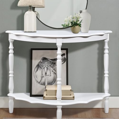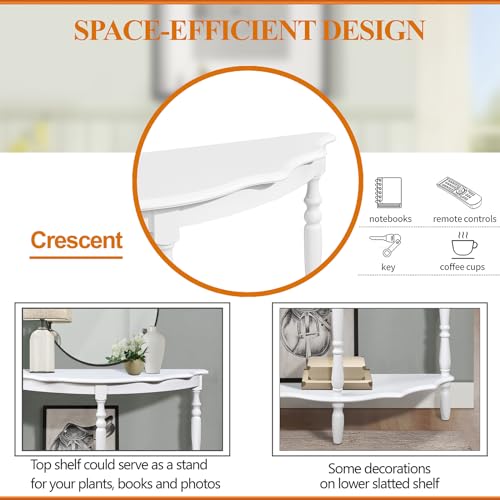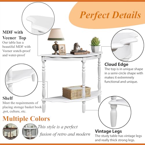 LUMISOL Retro Circular Curved Entryway Table with Cloud Design Top, Half Moon Console Table with Open Shelf, Sofa Table with Solid Wood Frame and Legs, Light Espresso