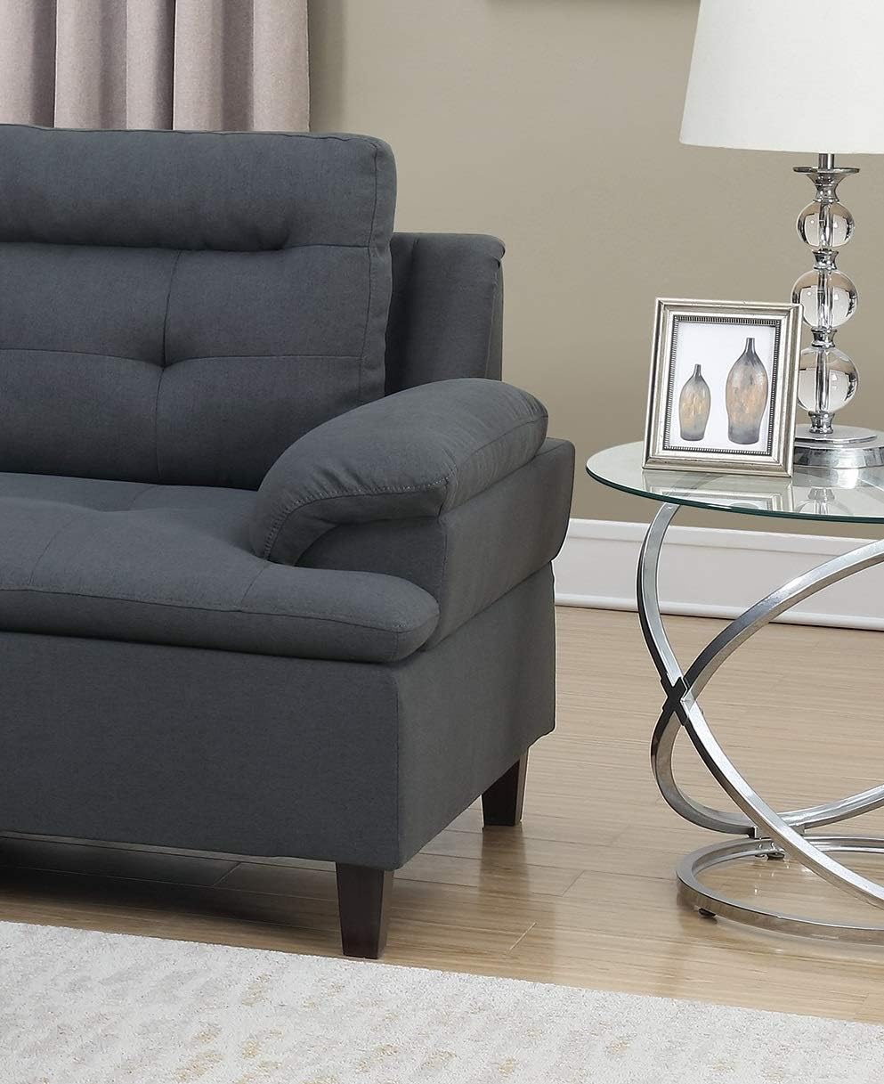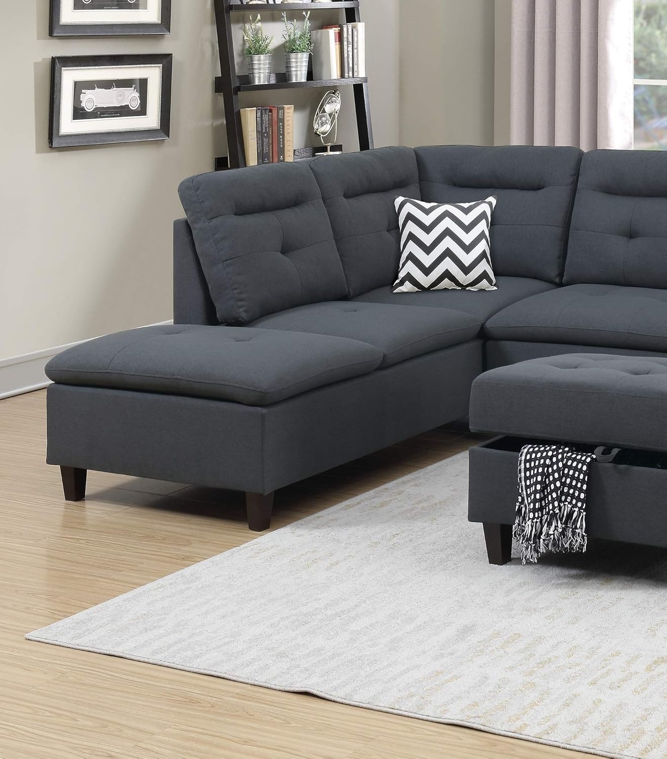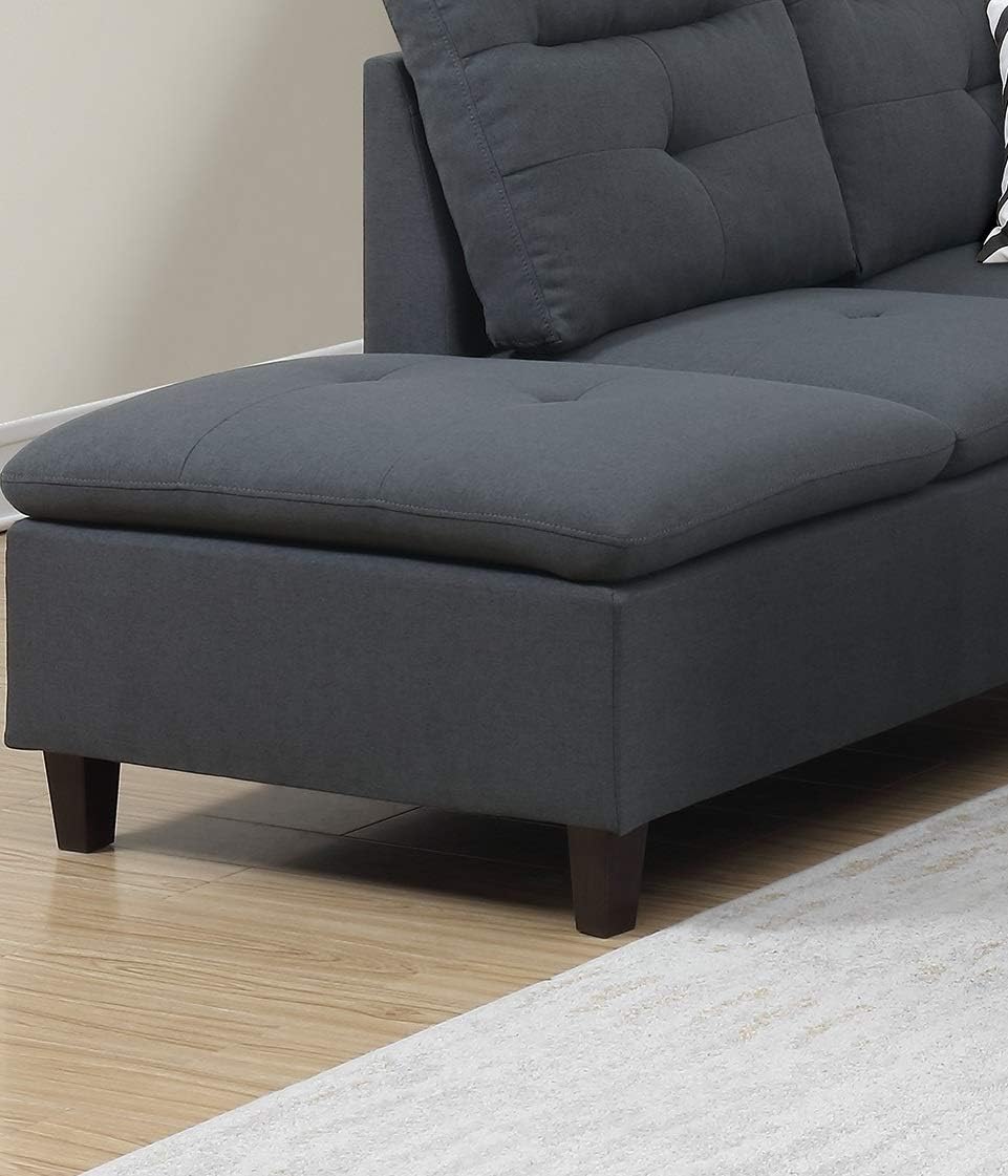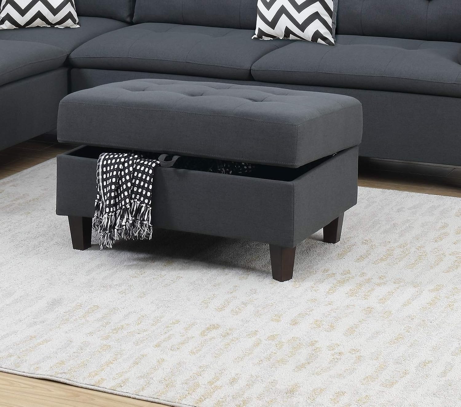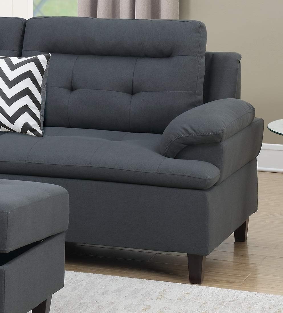 Living Room Furniture Charcoal Cushion Sectional w Ottoman Linen Like Fabric Sofa Chaise