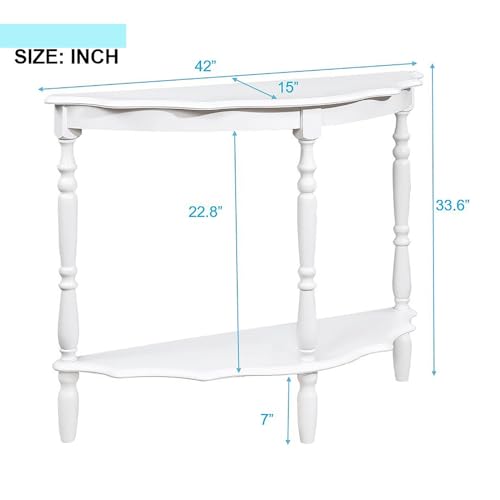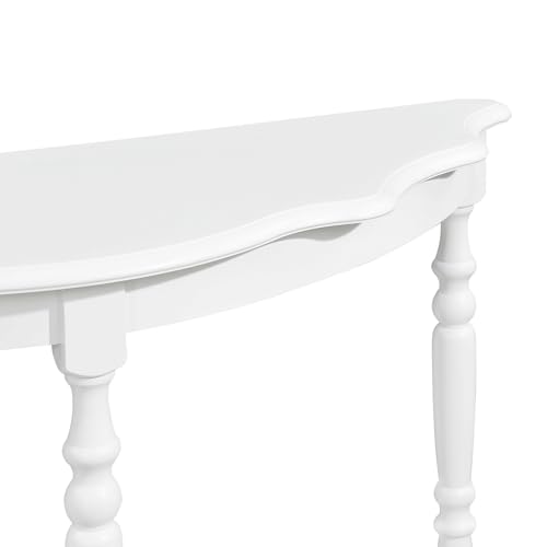 42'' Retro Circular Curved Half-Moon Console Table with Cloud Design Top and Open Shelf Solid Wood Frame and Legs, Light Espresso
