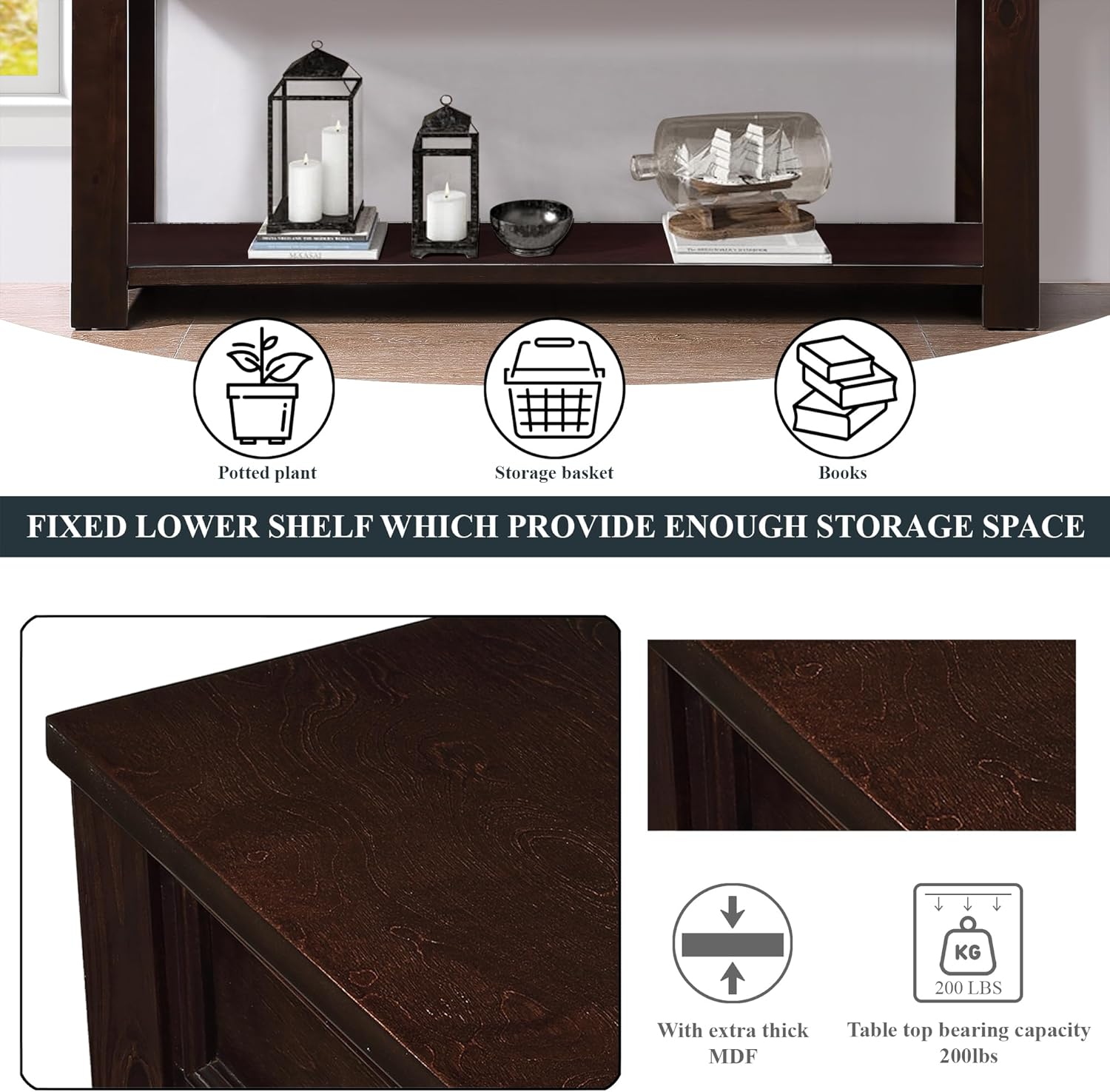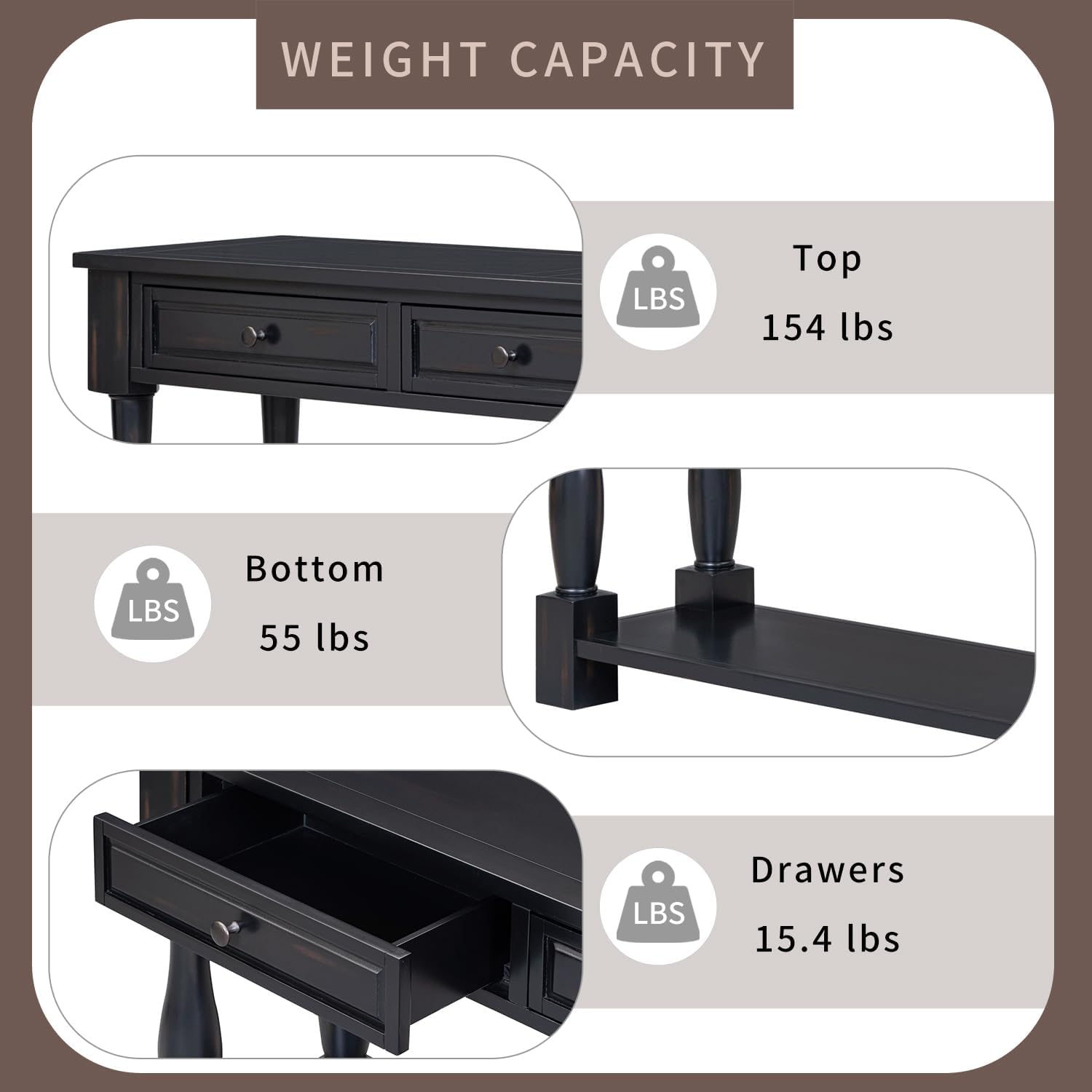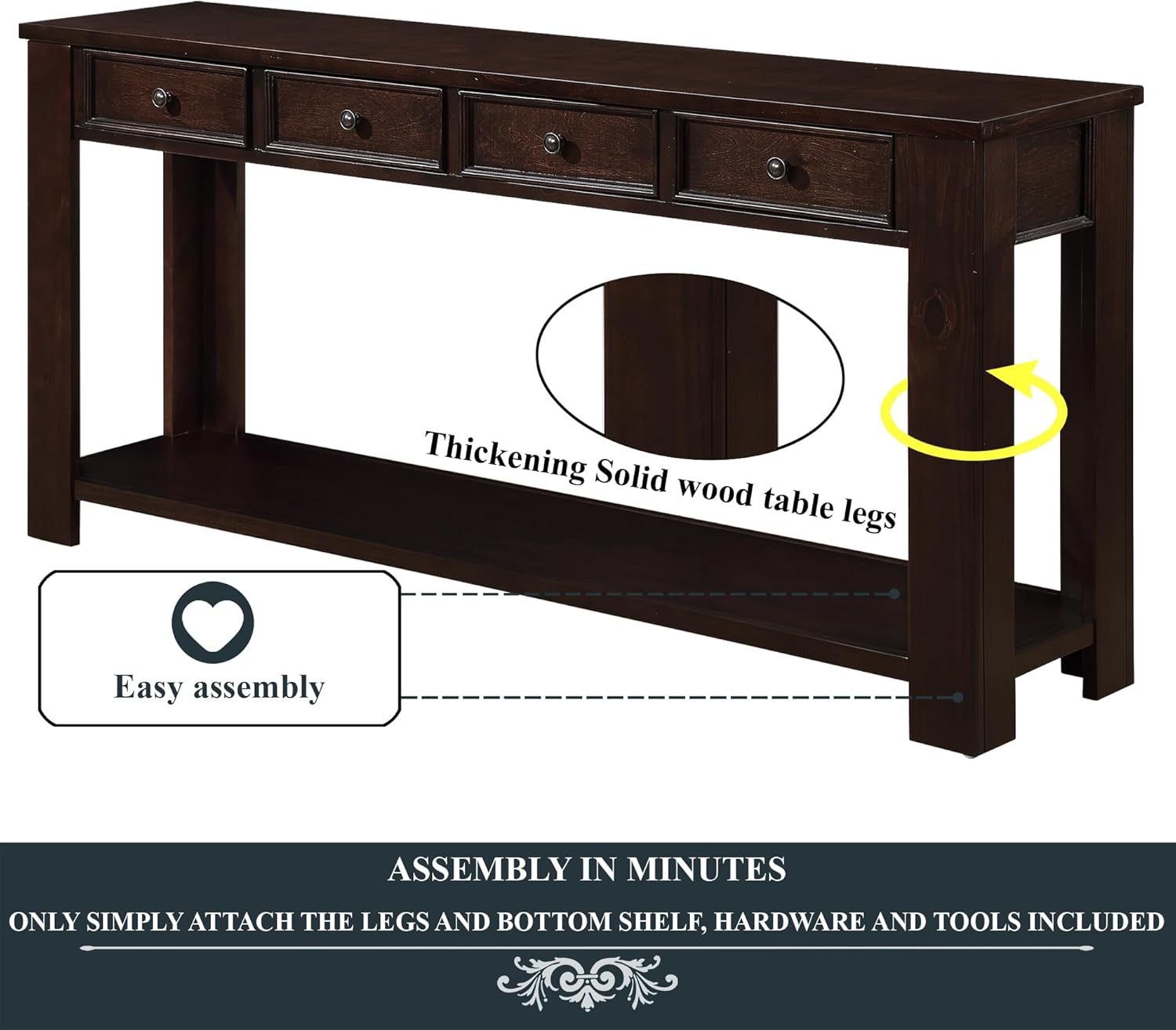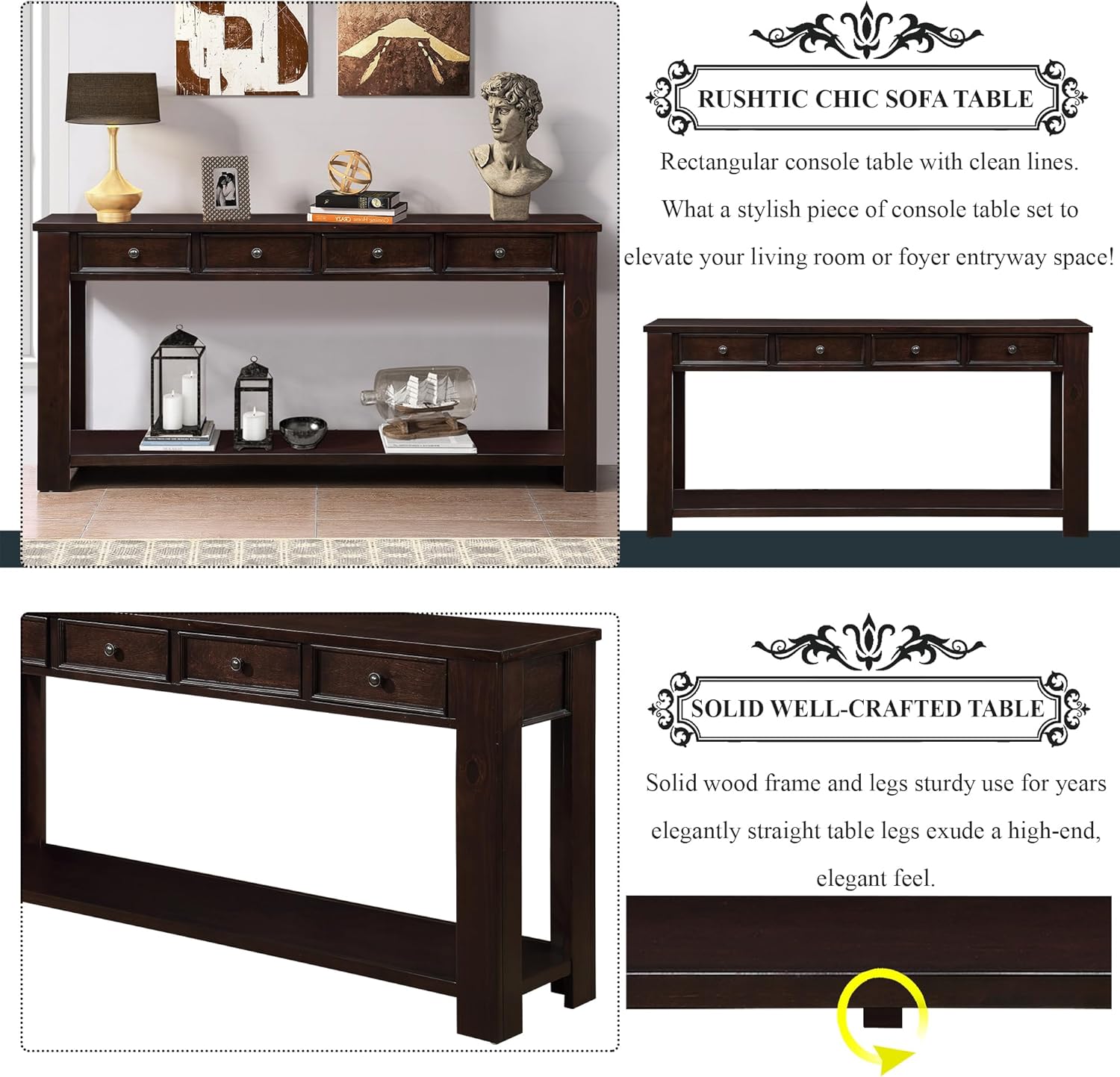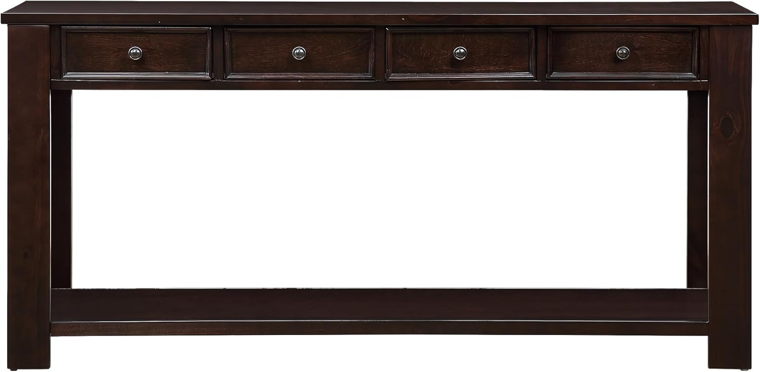 63" Pine Wood Console Table with 4 Drawers and 1 Bottom Shelf for Entryway Hallway Easy Assembly 63 inch Long Sofa Table Light Espresso