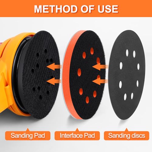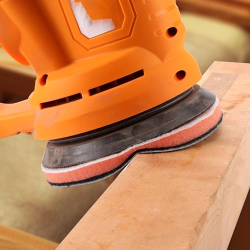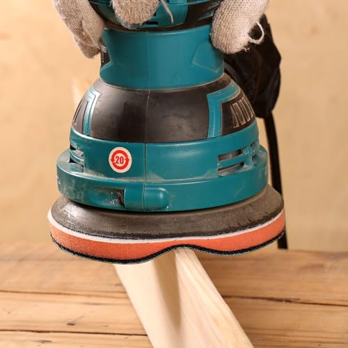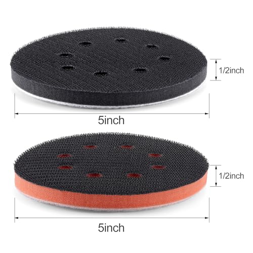 POLIWELL 5 inch Orbital Sander Soft Foam Backing Pad, Soft Density Interface Pad with 8 Hole 4Pcs, Foam Sanding Pads Hook and Loop for Orbital Sander Include 8Pcs 5 Inch Sanding Discs.