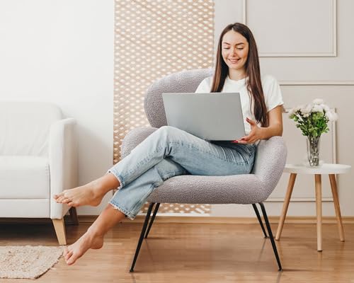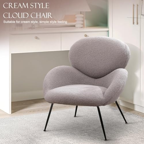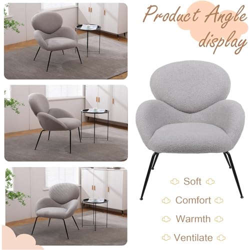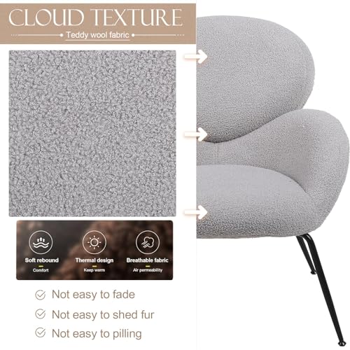 Accent Chair, Living Room Chairs Faux Fur Fabric, Modern Upholstered Sherpa Chair with Black Metal Legs, Accent Armchair with Backrest,Comfy Reading Chair for Bedroom,Relaxing,White