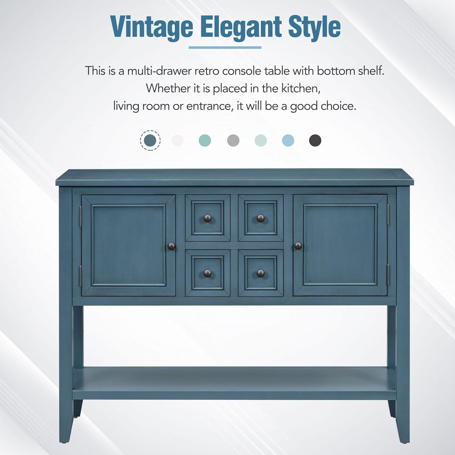 Vintage Entryway Sofa Console Table for with Drawers, Solid Wood Frame w/Storage Shelf for Hallway Farmhouse Living Room Home Kitchen, 46 inch, Light Navy