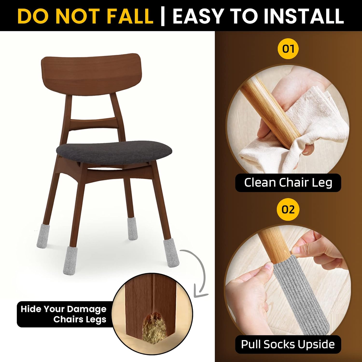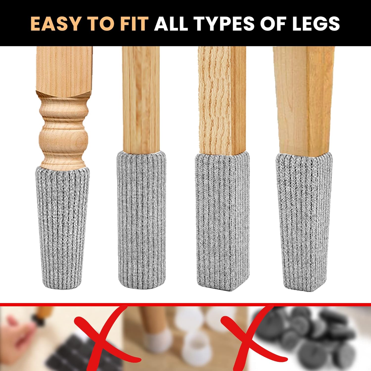 16 Pcs Grey Premium Chair Leg Socks Protectors for Hardwood Floors - Do not Easily Fall Off - Very Easy to Put on - Fits All Leg Shapes - High Elastic Bar Stool Leg Covers - Furniture Pads…