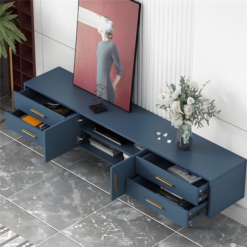NIUYAO Wood TV Media Stand Modern Entertainment Center Media Console Matte Finish Storage Cabinet Table with Drawers -Green 83" L x 14" W x 20" H