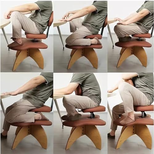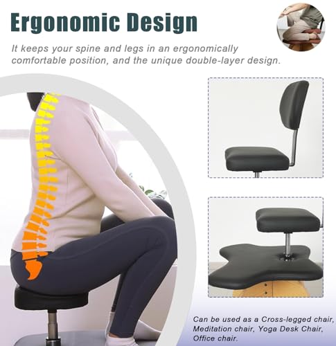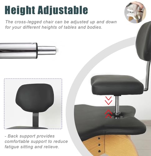 Kneeling Chair Meditation Chair with Back Support, Cross Legged Office Chair Wood Leg, Ergonomic Rocking Kneeling Chair Cross Stool for Yoga Computer Workers