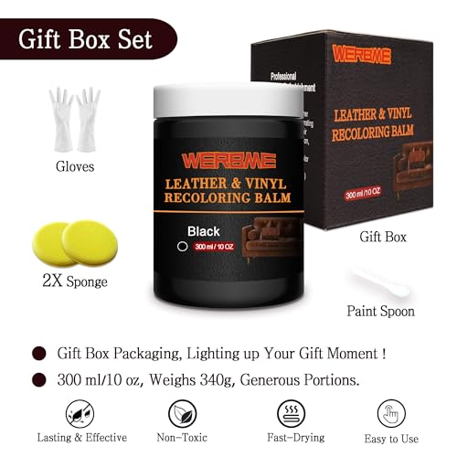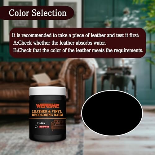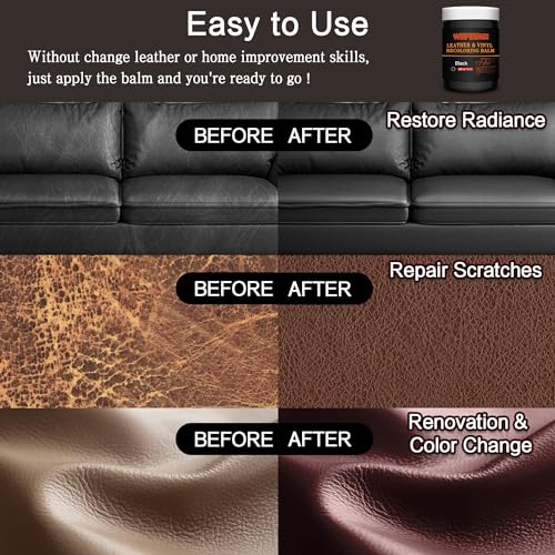 Leather Recoloring Balm, 10 OZ Black Leather Color Restorer for Scratched and Faded, Leather Repair Kit for Furniture Restore & Renew Restore Couches, Car Seats, Clothing, Shoes